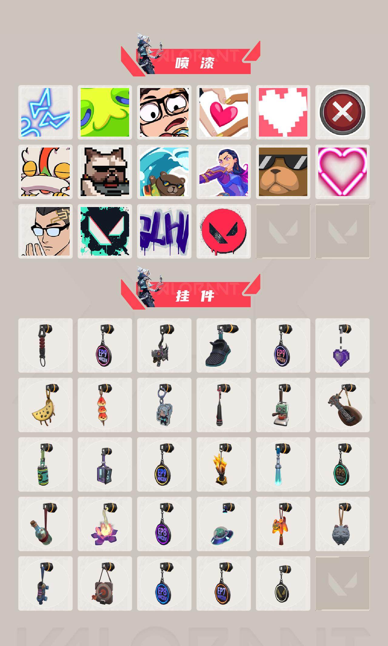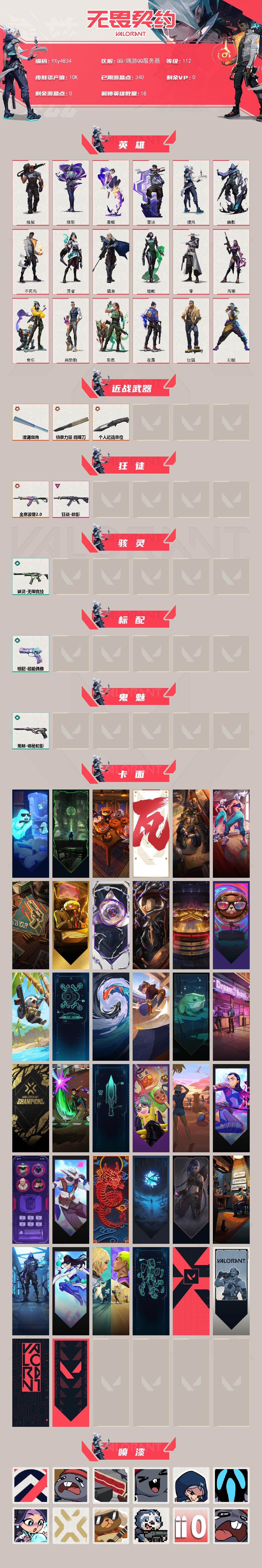 【英雄】:幻棱,炼狱,维斯,暮蝶,钛狐,壹决,捷风,幽影,不死鸟,贤者,猎枭,蝰蛇,零,芮娜,奇乐,尚勃勒,斯凯,夜露 【近战武器】:近战武器-侦察力量 蝴蝶刀,近战武器-澄湖潋滟,近战武器-个人近战单位 【狂徒】:狂徒-全息波普//2.0,狂徒-掠影 【骇灵】:骇灵-无限竞技 【标配】:标配-超能偶像 【鬼魅】:鬼魅-诡秘蛇影 【卡面】:精灵大战 卡面,欢迎来到底城 卡面,南瓜盛典 卡面,v