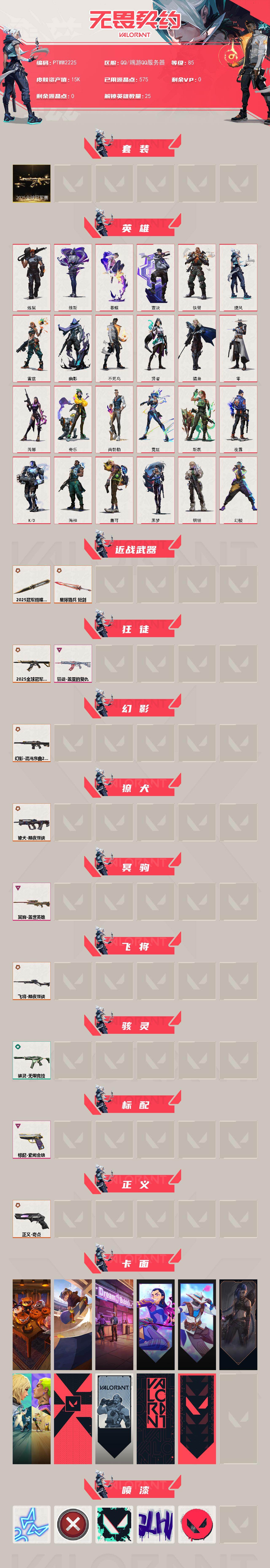 【ptww2225】终极7/卓越3/皮肤26/等级85/段位:黄金/2025全球冠军赛套装/幻棱/炼狱/维斯/暮蝶/壹决/铁臂/捷风/雷兹/幽影/不死鸟/贤者/猎枭/零/芮娜/奇乐/尚勃勒/霓虹/斯凯/夜露/k/o/海神/盖可/黑梦/钢锁/近战武器-2025全球冠军赛 蝴蝶刀/近战武器-星际猎兵 短剑/狂徒-2025全球冠军赛/盖亚的复仇-狂徒/幻影-混沌序曲//2.0/黯夜怪谈-獠犬