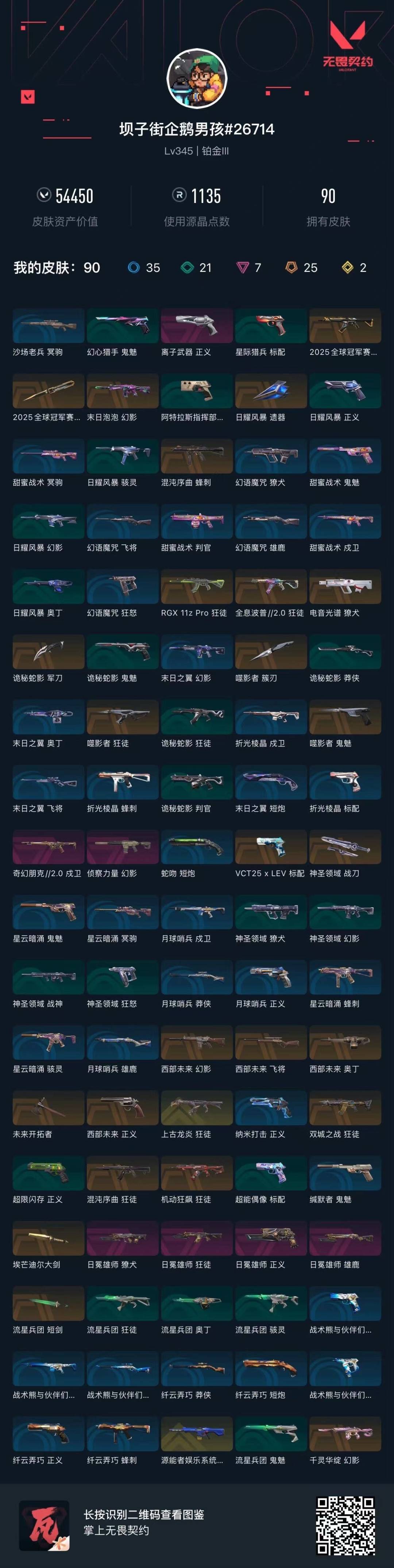 [16371611]25橙皮 2金皮 7紫皮 90皮肤 28英雄 149卡面 1135已用源晶 铂金段位 【套装】西部未来2025全球冠军赛日冕雄师套装 【近战武器皮肤】短剑-流星兵团日耀风暴 遗器诡秘蛇影噬影者簇刃未来开拓者神圣领域 战刀2025全球冠军赛 蝴蝶刀埃芒迪尔大剑 【佩呛皮肤】正义-西部未来鬼魅-噬影者标配-vct25xlev正义-日冕雄师正义-离子武器 【冲锋呛皮肤】蜂刺-混沌序曲 【霰弹呛皮肤】雄鹿-日冕雄师 【步呛皮肤】狂徒-噬影者戍卫-奇幻朋克2.0幻影-西部未来狂徒-上古龙炎狂徒-双城之战2025全球冠军赛 狂徒幻影-末日泡泡狂徒-rgx 11z pro獠犬-电音光谱狂徒-混沌序曲狂徒-机动狂飙狂徒-全息波普//2.0狂徒-日冕雄师幻影-侦察力量幻影-源能者娱乐系统幻影-千灵华绽獠犬-日冕雄师 【狙击呛皮肤】飞将-西部未来 【机呛皮肤】奥丁-西部未来 【挂饰】袖珍捷风挂饰西部未来挂饰神中神挂饰日冕雄狮挂饰致命一击挂饰新春炮竹挂饰2025全球冠军赛挂饰v26第一幕纪念币 挂饰vctxlev挂饰双城之战魄罗挂饰糖葫芦挂饰云开见日挂饰鱼骨头挂饰双城之战小蛋糕挂饰终章ko小金人挂饰迷你机甲挂饰