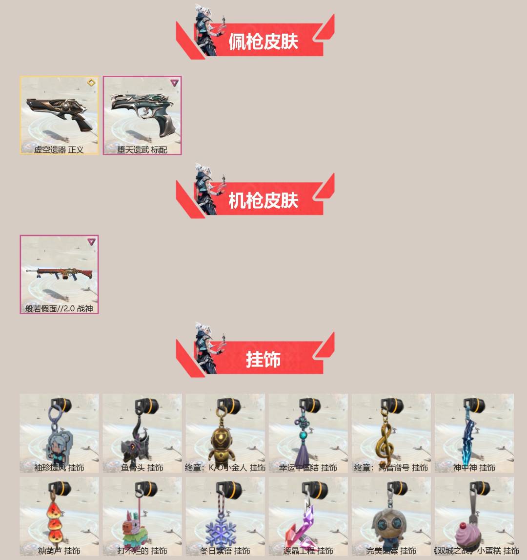 10橙皮 1金皮 4紫皮 66皮肤 28英雄 119卡面 790已用源晶 未定级段位 【套装】曲奇套装 【近战武器皮肤】匕首-超限闪存神圣领域 战刀荒土机兵热能刀爪刀-rgx 11z pro 3.0军刀-神罚 【佩呛皮肤】正义-虚空遗器标配-堕天遗武 【步呛皮肤】狂徒-离子武器2.0狂