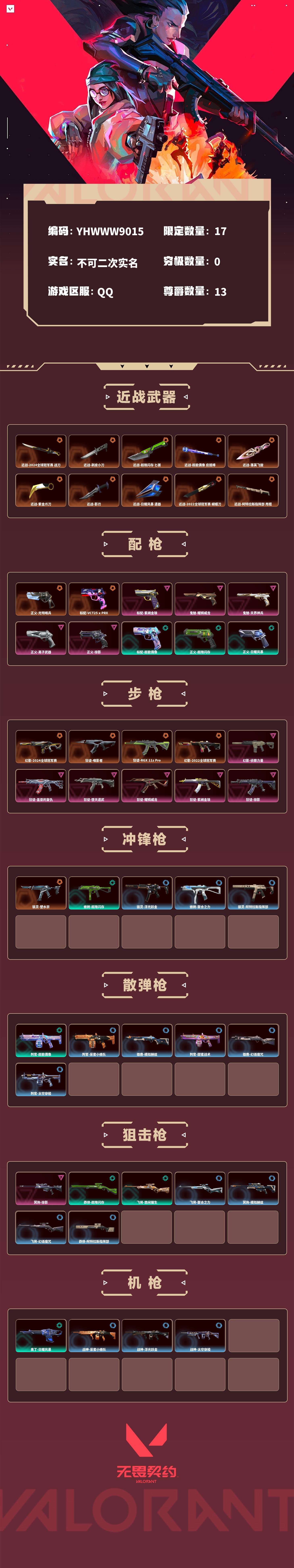 【无畏契约】【yhwww9015】等级:208,已用无畏点47080,已用源晶点1070,橙皮:幻影-2024全球冠军赛|近战-2024全球冠军赛 战刀|骇灵-塑水宗|近战-剥皮小刀|近战-超限闪存 匕首|近战-超能偶像 应援棒|近战-落英飞旋|近战-紫金爪刀|正义-光明哨兵|近战-影刃|标配-vct25 x prx|狂徒-噬影者|近战-日耀风暴 遗器|狂徒-rgx 11z pro|近战-2022全球冠军赛 蝴蝶刀|幻影-2022全球冠军赛|近战-阿特拉斯指挥部 甩棍__紫皮:标配-紫阙金琅|鬼魅-耀鳞威龙|鬼魅-天界神兵|幻影-侦察力量|狂徒-盖亚的复仇|狂徒-堕天遗武|狂徒-耀鳞威龙|狂徒-紫阙金琅|正义-离子武器|冥驹-掠影|狂徒-掠影|戍卫-掠影|正义-掠影__段位:黄金__蓝皮:短炮-天才少女|正义-纳米打击|鬼魅-星云暗涌|鬼魅-采蜜小蜂队|战神-采蜜小蜂队|獠犬-采蜜小蜂队|判官-采蜜小蜂队|骇灵-浮光跃金|标配-浮光跃金|戍卫-浮光跃金|战神-浮光跃金|蜂刺-聚合之力|幻影-聚合之力|狂怒-聚合之力|飞将-聚合之力|鬼魅-模拟赫兹|獠犬-模拟赫兹|冥驹-模拟赫兹|雄鹿-模拟赫兹|鬼魅-甜蜜战术|判官-甜蜜战术|戍卫-甜蜜战术|雄鹿-幻语魔咒|獠犬-幻语魔咒|飞将-幻语魔咒|狂怒-幻语魔咒|正义-太空穿梭|战神-太空穿梭|判官-太空穿梭|戍卫-太空穿梭|骇灵-阿特拉斯指挥部|莽侠-阿特拉斯指挥部|标配-阿特拉斯指挥部|狂徒-阿特拉斯指挥部__绿皮:戍卫-超能偶像|标配-超能偶像|狂徒-超能偶像|判官-超能偶像|正义-超限闪存|莽侠-超限闪存|幻影-超限闪存|蜂刺-超限闪存|正义-日耀风暴|幻影-日耀风暴|奥丁-日耀风暴|短炮-悠闲猫生|飞将-悠闲猫生|幻影-悠闲猫生|獠犬-悠闲猫生|鬼魅-幻心猎手|狂怒-蒙太奇__英雄:尚勃勒|维斯|黑梦|斯凯|暮蝶|盖可|霓虹|壹决|星礈|k/o|幽影|夜露|钢锁|海神|奇乐|炼狱|铁臂|贤者|猎枭|钛狐|芮娜|零|捷风|蝰蛇|不死鸟|幻棱|雷兹|禁灭