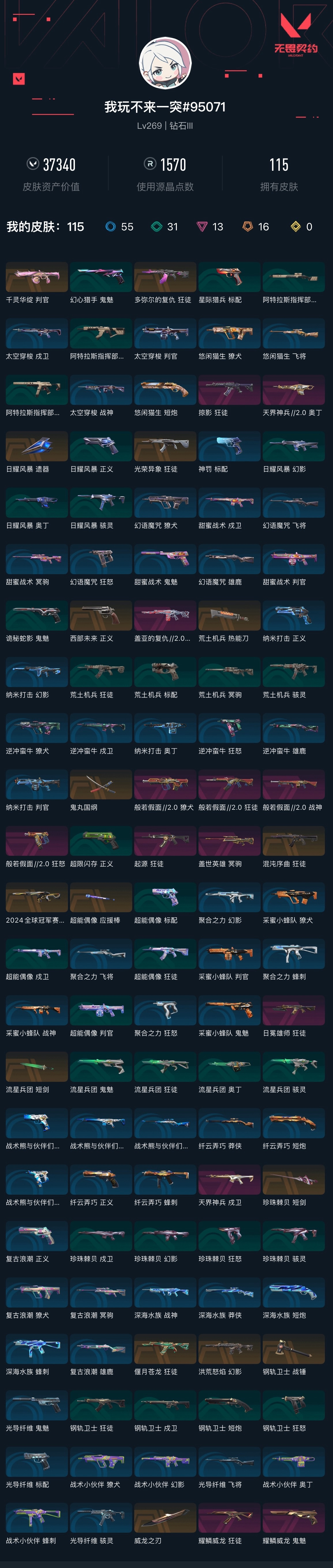 【无畏契约】【yhwww9005】等级:269,已用无畏点37340,已用源晶点1570,橙皮:幻影-2024全球冠军赛|幻影-洪荒怒焰|近战-钢轨卫士 战锤|近战-超能偶像 应援棒|近战-流星兵团 短剑|近战-威龙之刃|近战-珍珠棘贝 短剑|狂徒-偃月苍龙|狂徒-混沌序曲|判官-千灵华绽|近战-荒土机兵 热能刀|近战-鬼丸国纲|正义-西部未来|狂徒-光荣异象|近战-日耀风暴 遗器|狂徒-多弥尔的复仇__紫皮:奥丁-天界神兵2.0|鬼魅-耀鳞威龙|幻影-盖亚的复仇2.0|狂徒-起源|狂徒-日冕雄师|戍卫-天界神兵|狂徒-耀鳞威龙|冥驹-盖世英雄|狂徒-掠影|战神-般若假面2.0|獠犬-般若假面2.0|狂徒-般若假面2.0|狂怒-般若假面2.0__绿皮:短炮-钢轨卫士|骇灵-珍珠棘贝|幻影-珍珠棘贝|狂怒-钢轨卫士|狂徒-钢轨卫士|狂怒-珍珠棘贝|戍卫-钢轨卫士|戍卫-珍珠棘贝|狂徒-荒土机兵|标配-荒土机兵|骇灵-荒土机兵|冥驹-荒土机兵|戍卫-超能偶像|标配-超能偶像|狂徒-超能偶像|判官-超能偶像|正义-超限闪存|骇灵-流星兵团|鬼魅-流星兵团|狂徒-流星兵团|奥丁-流星兵团|鬼魅-诡秘蛇影|正义-日耀风暴|幻影-日耀风暴|奥丁-日耀风暴|短炮-悠闲猫生|飞将-悠闲猫生|獠犬-悠闲猫生|标配-星际猎兵|鬼魅-幻心猎手__蓝皮:鬼魅-光导纤维|飞将-光导纤维|标配-光导纤维|骇灵-光导纤维|獠犬-复古浪潮|冥驹-复古浪潮|雄鹿-复古浪潮|正义-复古浪潮|判官-纳米打击|正义-纳米打击|奥丁-纳米打击|幻影-纳米打击|雄鹿-逆冲蛮牛|狂怒-逆冲蛮牛|戍卫-逆冲蛮牛|獠犬-逆冲蛮牛|鬼魅-采蜜小蜂队|战神-采蜜小蜂队|獠犬-采蜜小蜂队|判官-采蜜小蜂队|蜂刺-聚合之力|幻影-聚合之力|狂怒-聚合之力|飞将-聚合之力|战神-深海水族|短炮-深海水族|蜂刺-深海水族|莽侠-深海水族|标配-神罚|莽侠-纤云弄巧|正义-纤云弄巧|短炮-纤云弄巧|蜂刺-纤云弄巧|蜂刺-战术小伙伴|幻影-战术小伙伴|獠犬-战术小伙伴|奥丁-战术小伙伴|飞将-战术熊与伙伴们|狂怒-战术熊与伙伴们|戍卫-战术熊与伙伴们|标配-战术熊与伙伴们|鬼魅-甜蜜战术|判官-甜蜜战术|戍卫-甜蜜战术|雄鹿-幻语魔咒|獠犬-幻语魔咒|飞将-幻语魔咒|狂怒-幻语魔咒|战神-太空穿梭|判官-太空穿梭|戍卫-太空穿梭|骇灵-阿特拉斯指挥部|莽侠-阿特拉斯指挥部|狂徒-阿特拉斯指挥部__段位:钻石__英雄:尚勃勒|维斯|黑梦|斯凯|暮蝶|盖可|霓虹|壹决|星礈|k/o|幽影|夜露|钢锁|海神|奇乐|炼狱|铁臂|贤者|猎枭|钛狐|芮娜|零|捷风|蝰蛇|不死鸟|幻棱|雷兹|禁灭