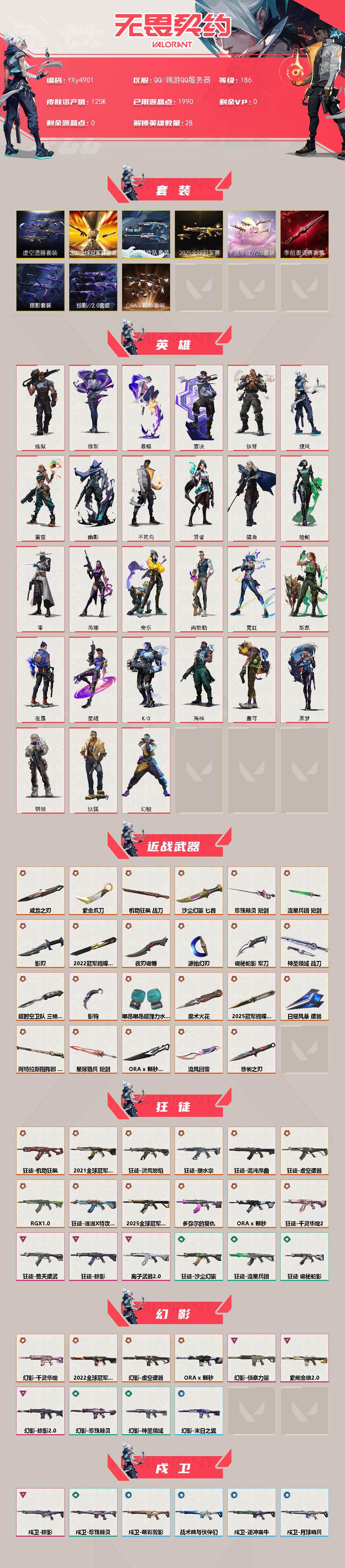 【12.5w库存22冠军套.水呛套.莲花套.颗秒套.双掠夺套.虚空套.三棱军刺.电工钳.怜悯之刃.21冠军ak.流脓.塑水宗.混沌.多弥尔】yxy4901【无二次】【因赛季更新游戏段付以上号为准!】 【套装】:2025全球冠军赛套装,2022全球冠军赛套装,无畏契约季前邀请赛套装,千灵华绽//2.0套装,a x 颗秒套装,滋滋x特攻队套装,虚空遗器套装,掠影套装,掠影//2.0套装 【英雄】:幻棱,炼狱,维斯,暮蝶,钛狐,壹决,铁臂,捷风,雷兹,幽影,不死鸟,贤者,猎枭,蝰蛇,零,芮娜,奇乐,尚勃勒,霓虹,斯凯,夜露,星礈,k/o,海神,盖可,黑梦,钢锁 【近战武器】:近战武器-2025全球冠军赛 蝴蝶刀,近战武器-2022全球冠军赛 蝴蝶刀,近战武器-无畏契约季前邀请赛 悲悯之刃,近战武器-流风回雪,近战武器-a x 颗秒 军刀,近战武器-魔术火花,近战武器-嘟昂嘟昂超弹力水球拳套,近战武器-影钩,近战武器-超时空卫队 三棱军刺,近战武器-紫金爪刀,近战武器-威龙之刃,近战武器-源始幻刃,近战武器-珍珠棘贝 短剑,近战武器-流星兵团 短剑,近战武器-机动狂飙 战刀,近战武器-沙尘幻旅 匕首,近战武器-夜刃诡镰,近战武器-影刃,近战武器-诡秘蛇影 军刀,近战武器-神圣领域 战刀,近战武器-日耀风暴 遗器,近战武器-阿特拉斯指挥部 甩棍,近战武器-星际猎兵 短剑,近战武器-魔术火花 【狂徒】:狂徒-2025全球冠军赛,狂徒-2021全球冠军赛,狂徒-洪荒怒焰,狂徒-混沌序曲,狂徒-机动狂飙,狂徒-塑水宗,狂徒-虚空遗器,狂徒-rgx 11z pro,狂徒-滋滋x特攻队,狂徒-多弥尔的复仇,狂徒-a x 颗秒,狂徒-千灵华绽//2.0,狂徒-堕天遗武,狂徒-掠影,狂徒-离子武器//2.0,狂徒-流星兵团,狂徒-沙尘幻旅,狂徒-诡秘蛇影 【幻影】:幻影-2022全球冠军赛,幻影-千灵华绽,幻影-虚空遗器,幻影-a x 颗秒,幻影-侦察力量,幻影-紫阙金琅//2.0,幻影-掠影//2.0,幻影-珍珠棘贝,幻影-神圣领域,幻影-末日之翼 【戍卫】:戍卫-掠影,戍卫-珍珠棘贝,戍卫-萌彩剪影,戍卫-逆冲蛮牛,戍卫-战术熊与伙伴们,戍卫-月球哨兵,戍卫-折光棱晶 【獠犬】:獠犬-日冕雄师,獠犬-神圣领域,獠犬-复古浪潮,獠犬-胡桃狂想,獠犬-逆冲蛮牛 【冥驹】:冥驹-滋滋x特攻队,冥驹-a x 颗秒,冥驹-堕天遗武,冥驹-掠影,冥驹-荒土机兵,冥驹-复古浪潮,冥驹-胡桃狂想,冥驹-星云暗涌 【飞将】:飞将-塑水宗,飞将-西部未来,飞将-天界神兵,飞将-沙尘幻旅,飞将-战术熊与伙伴们,飞将-末日之翼 【莽侠】:莽侠-千灵华绽//2.0,莽侠-诡秘蛇影,莽侠-深海水族,莽侠-纤云弄巧,莽侠-月球哨兵 【战神】:战神-奇点,战神-千灵华绽//2.0,战神-神圣领域,战神-萌彩剪影,战神-深海水族 【奥丁】:奥丁-掠影//2.0,奥丁-流星兵团,奥丁-纳米打击,奥丁-末日之翼 【判官】:判官-虚空遗器,判官-诡秘蛇影,判官-萌彩剪影,判官-纳米打击x 【雄鹿】:雄鹿-紫阙金琅//2.0,雄鹿-复古浪潮,雄鹿-逆冲蛮牛,雄鹿-月球哨兵 【骇灵】:骇灵-掠影//2.0,骇灵-荒土机兵,骇灵-流星兵团,骇灵-沙尘幻旅,骇灵-珍珠棘贝,骇灵-星云暗涌 【蜂刺】:蜂刺-混沌序曲,蜂刺-胡桃狂想,蜂刺-深海水族,蜂刺-纤云弄巧,蜂刺-星云暗涌,蜂刺-折光棱晶 【标配】:标配-电音光谱,标配-荒土机兵,标配-战术熊与伙伴们,标配-折光棱晶,标配-电音光谱 【vct手呛】:标配-vct x prx 【正义】:正义-奇点,正义-虚空遗器,正义-a x 颗秒,正义-掠影,正义-沙尘幻旅,正义-复古浪潮,正义-纤云弄巧,正义-游戏结束,正义-月球哨兵 【鬼魅】:鬼魅-千灵华绽//2.0,鬼魅-盖世英雄,鬼魅-耀鳞威龙,鬼魅-掠影//2.0,鬼魅-流星兵团,鬼魅-诡秘蛇影,鬼魅-光导纤维,鬼魅-胡桃狂想,鬼魅-星云暗涌 【狂怒】:狂怒-神中神罚,狂怒-珍珠棘贝,狂怒-神圣领域,狂怒-萌彩剪影,狂怒-逆冲蛮牛,狂怒-战术熊与伙伴们 【短炮】:短炮-归零者,短炮-梦魇恶魔,短炮-深海水族,短炮-纤云弄巧,短炮-末日之翼 【卡面】:纳米打击 卡面,抑制技术 卡面,激斗汉堡 卡面,瓦娃脸雪糕 p2 卡面,荒土机兵 卡面,银弹猎手 卡面,《双城之战》拥抱 卡面,精灵大战 卡面,欢迎来到底城 卡面,南瓜盛典 卡面,时间到 卡面,最高舞台 卡面,树懒大作战 卡面,声感陷阱设计图 卡面,梦幻奶茶 卡面,趁热吃 卡面,西装暴徒 卡面,失控边缘 卡面,哨卫者之领域 卡面,暮蝶工牌 卡面,战术熊与伙伴们 卡面,源能反应 卡面,流星兵团 卡面,纤云弄巧 卡面,暂别喧嚣 卡面,打造专属狂徒 卡面,零点嗅探设计图 卡面,表象之下 卡面,虹吸式咖啡壶 卡面,源能者美容 卡面,脚踝终结者 卡面 ,夜班 卡面,瓦娃脸雪糕 卡面 ,沙雕爆能器 卡面,无畏契约go!第一卷:芮娜 卡面,深海水族 卡面,珍珠棘贝 卡面,复古浪潮 卡面,盖可工牌 卡面,清除名单 卡面,无畏契约go!第一卷:零 卡面,终章:同步耍酷 卡面,龍记 卡面,化茧成蝶 卡面,《双城之战》金克丝 卡面,完美调谐 卡面 ,暗呛 卡面,无畏契约go!第一卷:贤者 卡面,终章:黑影先生的咖啡! 卡面,铁臂vs雷兹 卡面,纪念照 p2 卡面,钢锁vs盖可 卡面,别冒尖 卡面,一击全倒 卡面,黑影先生的咖啡! 卡面,天台狂欢 卡面,胡桃狂想 卡面,沙尘幻旅 卡面,壹决工牌 卡面,萌彩剪影 卡面,势不可挡//k/o 卡面,夯实根基 卡面,"luie" 卡面,热烈欢迎 卡面,铁臂设计图 卡面,代号红色 卡面,冰淇淋店 卡面,新兵报到 卡面,友军火力 卡面,v契约 卡面,无畏契约 卡面,暗潮 卡面 【喷漆】:请求重启 喷漆,逆冲蛮牛 喷漆,纳米打击 喷漆,鼻尖上的蝴蝶 喷漆,简笔画黯兽 喷漆,独守蝰腹 喷漆,他们将落荒而逃 喷漆,通缉