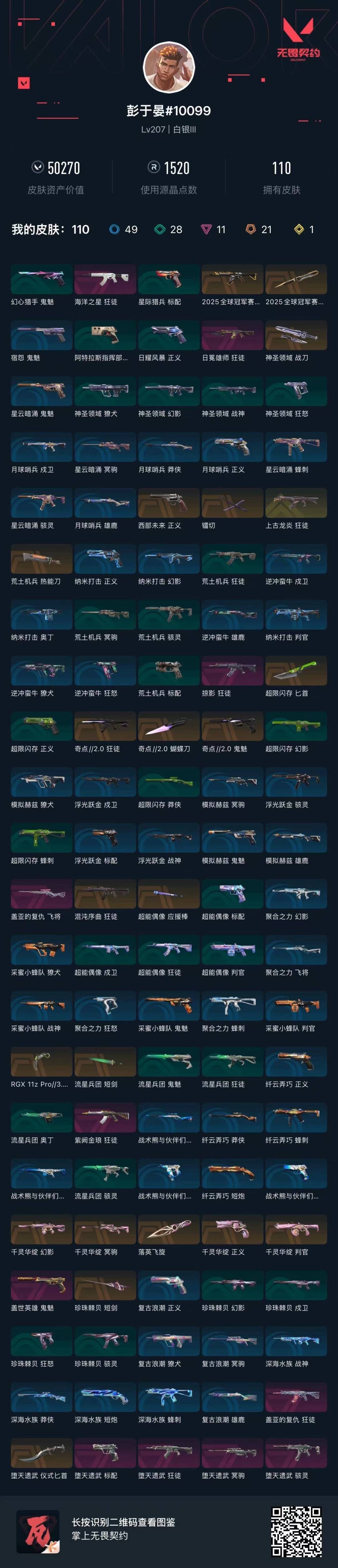 [16419266]21橙皮 1金皮 11紫皮 110皮肤 28英雄 161卡面 1520已用源晶 白银段位 【套装】奇点//2.0套装2025全球冠军赛千灵华绽套装堕天遗武套装 【近战武器皮肤】神圣领域 战刀镭切荒土机兵热能刀匕首-超限闪存短剑-流星兵团蝴蝶刀-奇点//2.02025全球冠军赛 蝴蝶刀堕天遗武 仪式匕首爪刀-rgx 11z pro 3.0短剑-珍珠棘贝超能偶像 应援棒落英飞旋 【佩呛皮肤】鬼魅-奇点//2.0正义-西部未来正义-千灵华绽鬼魅-盖世英雄标配-堕天遗武 【冲锋呛皮肤】骇灵-堕天遗武 【霰弹呛皮肤】判官-千灵华绽 【步呛皮肤】狂徒-混沌序曲狂徒-上古龙炎狂徒-奇点//2.0狂徒-掠影2025全球冠军赛 狂徒狂徒-紫阙金琅狂徒-海洋之星狂徒-盖亚的复仇狂徒-堕天遗武狂徒-日冕雄师幻影-千灵华绽 【狙击呛皮肤】飞将-盖亚的复仇冥驹-堕天遗武冥驹-千灵华绽 【挂饰】超能偶像挂饰袖珍捷风挂饰奇点2.0挂饰神中神挂饰千灵华绽挂饰传世莲华挂饰2025全球冠军赛挂饰双城之战小蛋糕挂饰糖葫芦挂饰蓄势待滚挂饰云开见日挂饰幸运中国结挂饰终章ko小金人挂饰飞刀挂饰迷你机甲挂饰