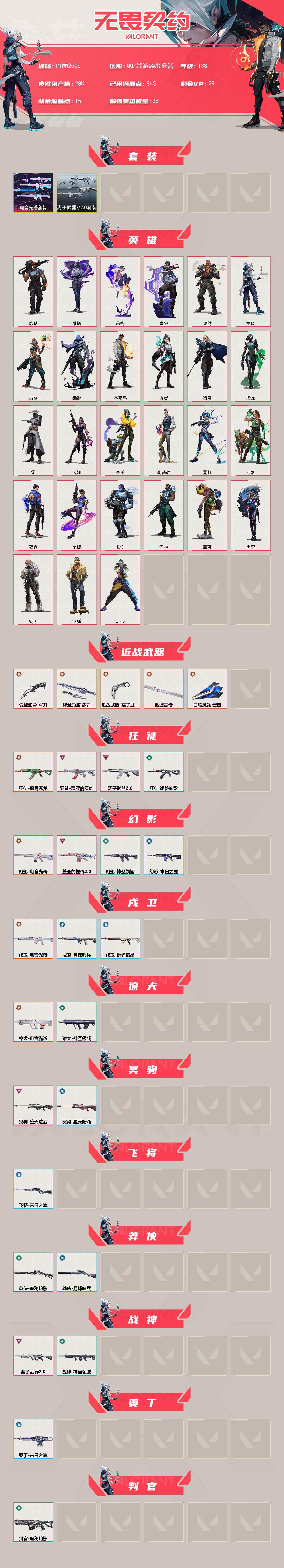 【ptww2508】终极12/传奇1/卓越7/皮肤66/等级138/段位:钻石/电音光谱套装/离子武器//2.0套装/幻棱/炼狱/维斯/暮蝶/钛狐/壹决/铁臂/捷风/雷兹/幽影/不死鸟/贤者/猎枭/蝰蛇/零/芮娜/奇乐/尚勃勒/霓虹/斯凯/夜露/星礈/k/o/海神/盖可/黑梦/钢锁/近战武器-谐波音谱/近战武器-离子武器//2.0 爪刀/近战武器-诡秘蛇影 军刀/近战武器-神圣领域