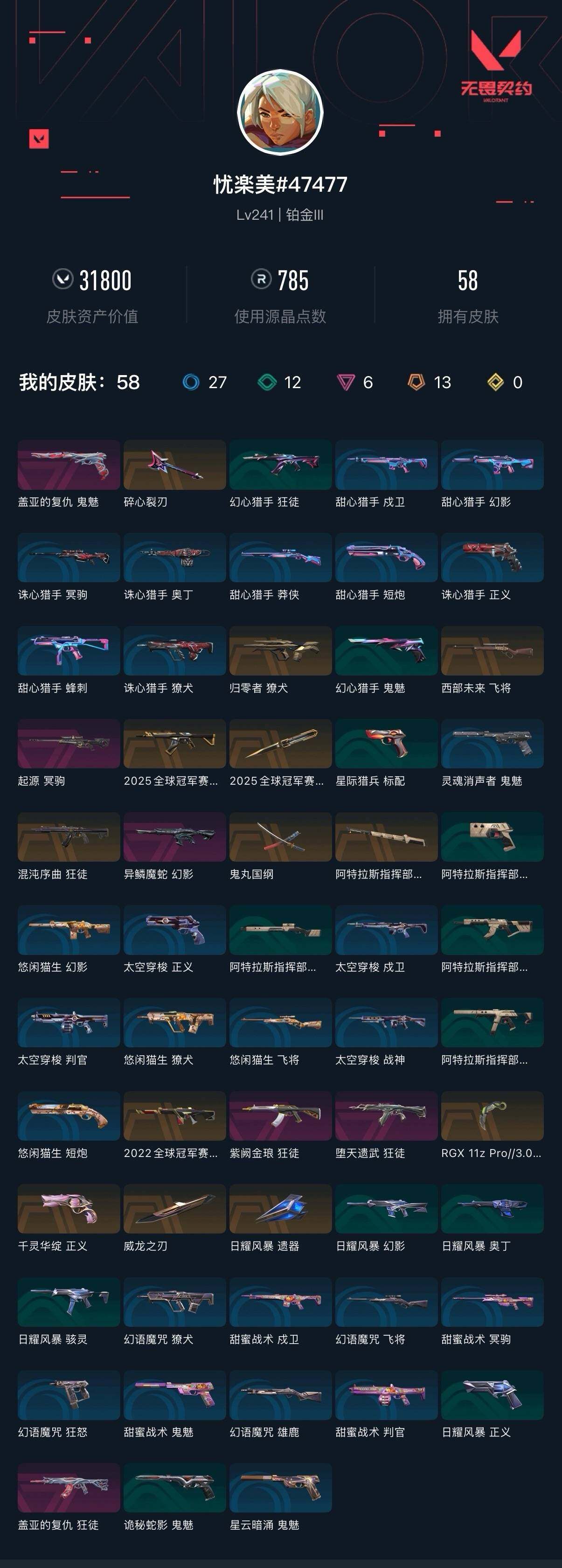 [16427671]【编号86357 可秒换绑】【25冠军套22冠军幻影各种热门皮肤!!】 【套装】:2025全球冠军赛套装 【英雄】:幻棱,炼狱,维斯,暮蝶,钛狐,壹决,铁臂,捷风,雷兹,幽影,不死鸟,贤者,猎枭,蝰蛇,零,芮娜,奇乐,尚勃勒,霓虹,斯凯,夜露,星礈,k/o,海神,盖可,黑梦,钢锁 【近战武器】:近战武器-2025全球冠军赛 蝴蝶刀,近战武器-rgx 11z pro//3.0 爪刀,近战武器-威龙之刃,近战武器-鬼丸国纲,近战武器-日耀风暴 遗器,近战武器-阿特拉斯指挥部 甩棍 【狂徒】:狂徒-2025全球冠军赛,狂徒-混沌序曲,狂徒-堕天遗武,狂徒-盖亚的复仇,狂徒-紫阙金琅 【幻影】:幻影-2022全球冠军赛,幻影-异鳞魔蛇 【獠犬】:獠犬-归零者 【冥驹】:冥驹-起源 【飞将】:飞将-西部未来 【正义】:正义-千灵华绽 【鬼魅】:鬼魅-盖亚的复仇,鬼魅-诡秘蛇影,鬼魅-灵魂消声者,鬼魅-星云暗涌 【卡面】:树懒大作战 卡面,红鳞松叶 卡面,霓帧牛蛙 卡面,无畏契约go!第一卷:芮娜 卡面,深海水族 卡面,无畏契约go!第一卷:零 卡面,无畏契约go!第一卷:贤者 卡面,别冒尖 卡面,代号红色 卡面,新兵报到 卡面,v契约 卡面,无畏契约 卡面 【喷漆】:皮蛋呼呼 喷漆,买装还是存钱 喷漆,关门放狗 喷漆,无畏契约go!第一卷:芮娜 喷漆,红鳞 喷漆,无畏契约go!第一卷:贤者 喷漆,暴走萝莉 喷漆,飓刃涂鸦 喷漆 ,又一个梦幻组合 喷漆,胜利属于无畏契约 喷漆,glhf 喷漆,无畏契约 喷漆 【挂饰】:v25第六幕:超凡 挂饰,暗藏猫腻 挂饰,薰衣草之心 挂饰,糖葫芦 挂饰,天外飞客 挂饰,《双城之战》魄罗 挂饰,无畏契约 纪念币 挂饰