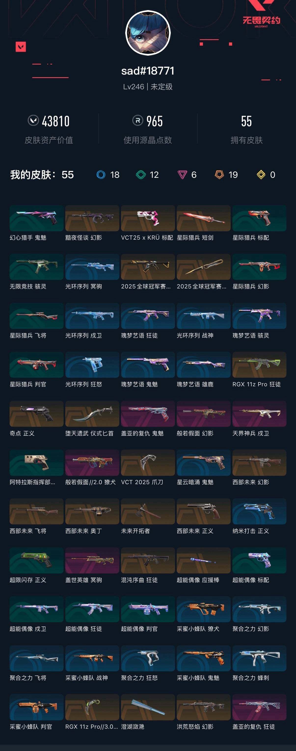 [16427786]【编号67354 可秒换绑】【25冠军套各种t0皮肤!喜欢的宝宝快来买!】 【套装】:2025全球冠军赛套装,vct 2025 赛季套装,西部未来套装 【英雄】:幻棱,炼狱,维斯,暮蝶,钛狐,壹决,铁臂,捷风,雷兹,幽影,不死鸟,贤者,猎枭,蝰蛇,零,芮娜,奇乐,尚勃勒,霓虹,斯凯,夜露,星礈,k/o,海神,盖可,黑梦,钢锁 【近战武器】:近战武器-2025全球冠军赛 蝴蝶刀,近战武器-vct 2025 爪刀,近战武器-rgx 11z pro//3.0 爪刀,近战武器-澄湖潋滟,近战武器-未来开拓者,近战武器-超能偶像 应援棒,近战武器-堕天遗武 仪式匕首,近战武器-星际猎兵 短剑 【狂徒】:狂徒-2025全球冠军赛,狂徒-混沌序曲,狂徒-rgx 11z pro,狂徒-盖亚的复仇,狂徒-超能偶像 【幻影】:幻影-黯夜怪谈,幻影-洪荒怒焰,幻影-西部未来,幻影-般若假面,幻影-聚合之力,幻影-西部未来 【戍卫】:戍卫-天界神兵,戍卫-超能偶像 【獠犬】:獠犬-般若假面//2.0,獠犬-采蜜小蜂队 【冥驹】:冥驹-盖世英雄 【飞将】:飞将-西部未来,飞将-聚合之力 【战神】:战神-采蜜小蜂队 【奥丁】:奥丁-西部未来 【判官】:判官-超能偶像,判官-采蜜小蜂队 【骇灵】:骇灵-无限竞技 【蜂刺】:蜂刺-聚合之力 【标配】:标配-超能偶像 【vct手呛】:标配-vct25 x krü 【正义】:正义-奇点,正义-西部未来,正义-超限闪存,正义-纳米打击 【鬼魅】:鬼魅-盖亚的复仇,鬼魅-采蜜小蜂队,鬼魅-星云暗涌 【狂怒】:狂怒-聚合之力 【卡面】:终章:激斗汉堡 卡面,进入射程 卡面,《双城之战》拥抱 卡面,精灵大战 卡面,欢迎来到底城 卡面,南瓜盛典 卡面,vct cn首冠 卡面,修车达人 卡面,热舞环节 卡面,正义的化身 卡面,终章:生意人麦宝 卡面,铁之华 卡面,失而复得 卡面,时间到 卡面,最高舞台 卡面,复活专家 卡面,归乡 // 蝰蛇 卡面,超能偶像 卡面,生意人麦宝 卡面,音熊登场 卡面,树懒大作战 卡面,声感陷阱设计图 卡面,红鳞松叶 卡面,clutch 卡面,钢锁工牌 卡面,战术小伙伴的夏日 卡面,采蜜小蜂队 卡面,聚合之力 卡面,梦幻奶茶 卡面,源能反应 卡面,零点嗅探设计图 卡面,无畏契约go!第一卷:芮娜 卡面,盖可工牌 卡面,无畏契约go!
