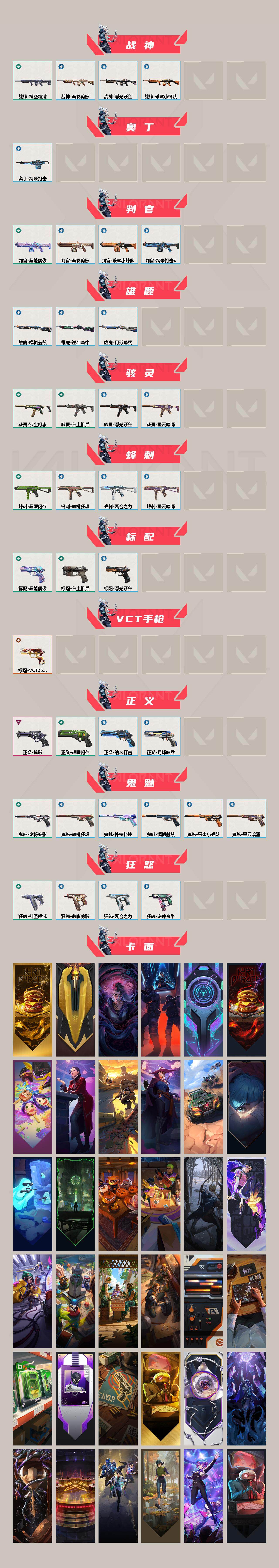 【套装】:掠影套装 【英雄】:幻棱,炼狱,维斯,暮蝶,钛狐,壹决,铁臂,捷风,雷兹,幽影,不死鸟,贤者,猎枭,蝰蛇,零,芮娜,奇乐,尚勃勒,霓虹,斯凯,夜露,星礈,k/o,海神,盖可,黑梦,钢锁 【近战武器】:近战武器-剥皮小刀,近战武器-rgx 11z pro//3.0 爪刀,近战武器-鬼丸国纲,近战武器-超能偶像 应援棒,近战武器-超限闪存 匕首,近战武器-荒土机兵 热能刀,近战武器-影刃