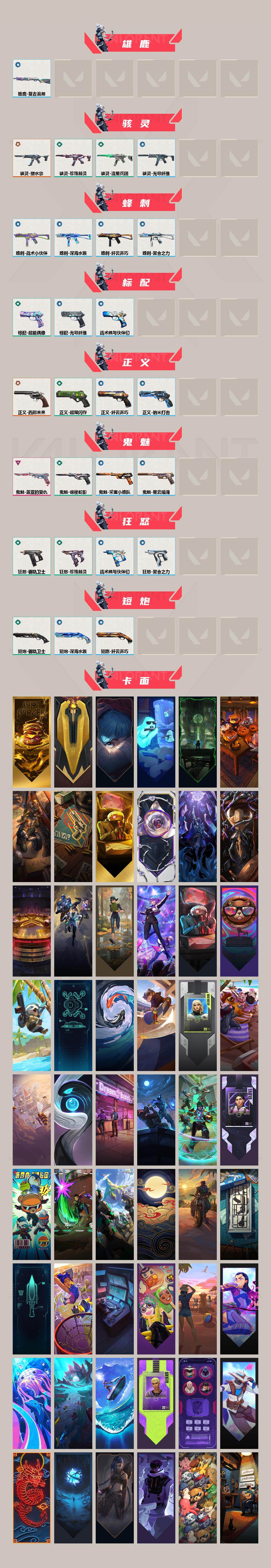 [16443910]【英雄】:幻棱,炼狱,维斯,暮蝶,钛狐,壹决,铁臂,捷风,雷兹,幽影,不死鸟,贤者,猎枭,蝰蛇,零,芮娜,奇乐,尚勃勒,霓虹,斯凯,夜露,星礈,k/o,海神,盖可,黑梦,钢锁 【近战武器】:近战武器-魔术火花,近战武器-rgx 11z pro//3.0 爪刀,近战武器-澄湖潋滟,近战武器-超能偶像 应援棒,近战武器-魔术火花 【狂徒】:狂徒-洪荒怒焰,狂徒-塑水宗,狂徒-偃月苍龙,狂徒-光荣异象,狂徒-掠影,狂徒-日冕雄师,狂徒-耀鳞威龙,狂徒-奇幻朋克//3.0,狂徒-超能偶像,狂徒-流星兵团 【幻影】:幻影-洪荒怒焰,幻影-奇幻朋克//3.0,幻影-聚合之力,幻影-战术小伙伴 【戍卫】:戍卫-超能偶像,戍卫-钢轨卫士,戍卫-珍珠棘贝,戍卫-战术熊与伙伴们 【獠犬】:獠犬-采蜜小蜂队,獠犬-复古浪潮 【冥驹】:冥驹-复古浪潮 【飞将】:飞将-聚合之力,飞将-光导纤维,飞将-战术熊与伙伴们 【莽侠】:莽侠-深海水族,莽侠-纤云弄巧 【战神】:战神-采蜜小蜂队,战神-深海水族 【奥丁】:奥丁-流星兵团,奥丁-战术小伙伴 【判官】:判官-超能偶像,判官-采蜜小蜂队 【雄鹿】:雄鹿-复古浪潮 【骇灵】:骇灵-塑水宗,骇灵-流星兵团,骇灵-珍珠棘贝,骇灵-光导纤维 【蜂刺】:蜂刺-聚合之力,蜂刺-深海水族,蜂刺-纤云弄巧,蜂刺-战术小伙伴 【标配】:标配-超能偶像,标配-光导纤维,标配-战术熊与伙伴们 【正义】:正义-西部未来,正义-超限闪存,正义-纳米打击,正义-纤云弄巧 【鬼魅】:鬼魅-盖亚的复仇,鬼魅-诡秘蛇影,鬼魅-采蜜小蜂队,鬼魅-星云暗涌 【狂怒】:狂怒-钢轨卫士,狂怒-珍珠棘贝,狂怒-聚合之力,狂怒-战术熊与伙伴们 【短炮】:短炮-钢轨卫士,短炮-深海水族,短炮-纤云弄巧 【卡面】:终章:激斗汉堡 卡面,进入射程 卡面,《双城之战》拥抱 卡面,精灵大战 卡面,欢迎来到底城 卡面,南瓜盛典 卡面,修车达人 卡面,正义的化身 卡面,终章:生意人麦宝 卡面,铁之华 卡面,失而复得 卡面,时间到 卡面,最高舞台 卡面,复活专家 卡面,归乡 // 蝰蛇 卡面,超能偶像 卡面,生意人麦宝 卡面,音熊登场 卡面,树懒大作战 卡面,声感陷阱设计图 卡面,红鳞松叶 卡面,clutch 卡面,钢锁工牌 卡面,战术小伙伴的夏日 卡面,采蜜小蜂队 卡面,聚合之力 卡面,梦幻奶茶 卡