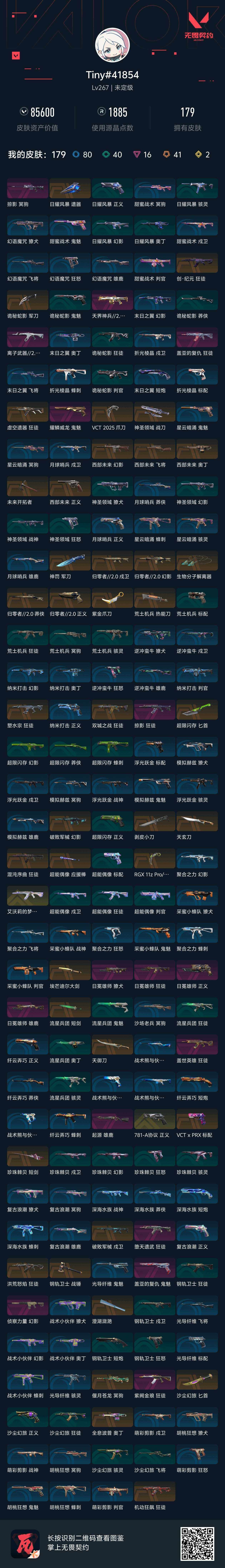 [16449274]das8830包人脸 【账号状态】无封号 【区服】qq 【游戏等级】lv267 【游戏段位】未定级 【剩余v点】29 【剩余r点】45 【皮肤资产价值】85600 【使用r点】1885 【英雄数量】27 【皮肤数量】179 【卡面数量】206 【喷漆数量】211 【挂件数量】145 【套装】:vct 2025 赛季套装,西部未来套装,归零者//2.0套装,日冕雄师套装 【英雄】:幻棱,炼狱,维斯,暮蝶,钛狐,壹决,铁臂,捷风,雷兹,幽影,不死鸟,贤者,猎枭,蝰蛇,零,芮娜,奇乐,尚勃勒,霓虹,斯凯,夜露,星礈,k/o,海神,盖可,黑梦,钢锁 【近战武器】:近战武器-剥皮小刀,近战武器-vct 2025 爪刀,近战武器-紫金爪刀,近战武器-rgx 11z pro//3.0 爪刀,近战武器-澄湖潋滟,近战武器-未来开拓者,近战武器-埃芒迪尔大剑,近战武器-珍珠棘贝 短剑,近战武器-流星兵团 短剑,近战武器-超能偶像 应援棒,近战武器-超限闪存 匕首,近战武器-钢轨卫士 战锤,近战武器-荒土机兵 热能刀,近战武器-沙尘幻旅 匕首,近战武器-神罚 军刀,近战武器-生物分子解离器,近战武器-天玄刀,近战武器-天御刀,近战武器-诡秘蛇影 军刀,近战武器-神圣领域 战刀,近战武器-日耀风暴 遗器 【狂徒】:狂徒-艾沃莉的梦之翼,狂徒-洪荒怒焰,狂徒-混沌序曲,狂徒-机动狂飙,狂徒-双城之战,狂徒-塑水宗,狂徒-创·纪元,狂徒-虚空遗器,狂徒-堕天遗武,狂徒-掠影,狂徒-盖世英雄,狂徒-盖亚的复仇,狂徒-日冕雄师,狂徒-紫阙金琅,狂徒-离子武器//2.0,狂徒-超能偶像,狂徒-钢轨卫士,狂徒-荒土机兵,狂徒-流星兵团,狂徒-沙尘幻旅,狂徒-诡秘蛇影 【幻影】:幻影-归零者//2.0,幻影-破败军械,幻影-西部未来,幻影-侦察力量,幻影-超限闪存,幻影-珍珠棘贝,幻影-神圣领域,幻影-聚合之力,幻影-纳米打击,幻影-战术小伙伴,幻影-末日之翼,幻影-西部未来 【戍卫】:戍卫-归零者//2.0,戍卫-破败军械,戍卫-超能偶像,戍卫-钢轨卫士,戍卫-珍珠棘贝,戍卫-浮光跃金,戍卫-萌彩剪影,戍卫-逆冲蛮牛,戍卫-战术熊与伙伴们,戍卫-月球哨兵,戍卫-折光棱晶 【獠犬】:獠犬-日冕雄师,獠犬-神圣领域,獠犬-采蜜小蜂队,獠犬-复古浪潮,獠犬-胡桃狂想,獠犬-模拟赫兹,獠犬-逆冲蛮牛,獠犬