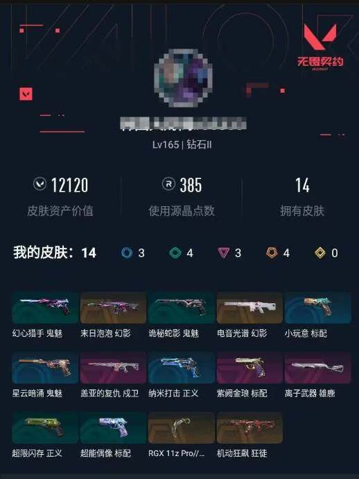 【wwqh221】终极4/卓越3/皮肤14/等级165/段位:钻石/幻棱/炼狱/维斯/暮蝶/钛狐/壹决/铁臂/捷风/雷兹/幽影/不死鸟/贤者/猎枭/蝰蛇/零/芮娜/奇乐/尚勃勒/霓虹/夜露/星礈/k/o/海神/盖可/黑梦/钢锁/rgx-11z-pro//3.0-爪刀/狂徒-机动狂飙/幻影-电音光谱/幻影-末日泡泡/戍卫-盖亚的复仇/雄鹿-离子武器/标配-紫阙金琅/标配-超能偶像/标配-