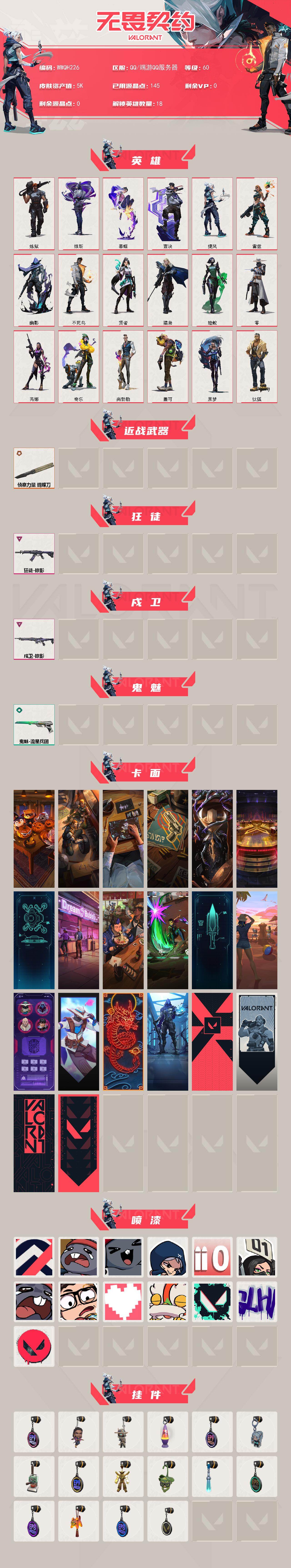 【wwqh226】终极1/卓越2/皮肤4/等级60/段位:黄金/炼狱/维斯/暮蝶/钛狐/壹决/捷风/雷兹/幽影/不死鸟/贤者/猎枭/蝰蛇/零/芮娜/奇乐/尚勃勒/盖可/黑梦/侦察力量-蝴蝶刀/掠影-狂徒/掠影-戍卫/鬼魅-流星兵团/南瓜盛典 卡面/修车达人 卡面/浮光跃金 卡面/正义的化身 卡面/时间到 卡面/最高舞台 卡面/声感陷阱设计图 卡面/梦幻奶茶 卡面/趁热吃 卡面/源能反应