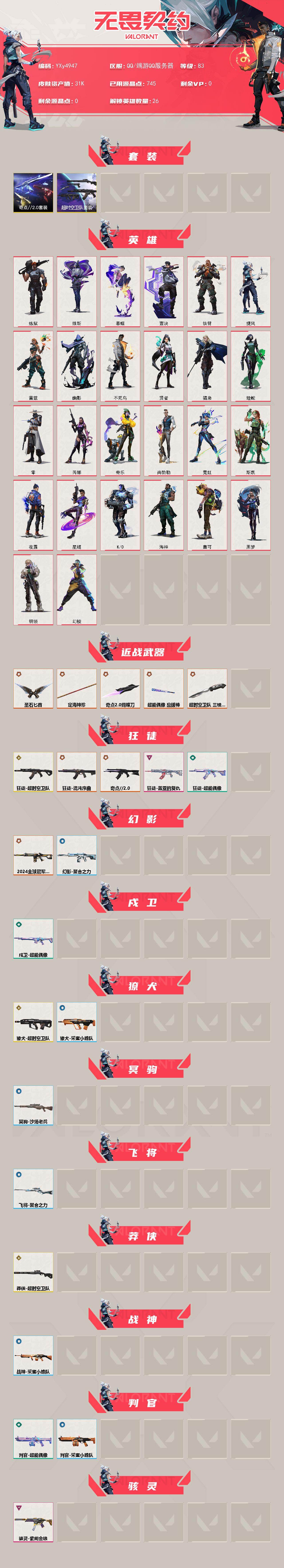 【3.1w库存超时空全套.奇点2.0套装.三棱军刺.圣石匕首.混沌.盖亚.24冠军幻影】y4947【无二次】【因赛季更新游戏段付以上号为准!】 【套装】:超时空卫队套装,奇点//2.0套装 【英雄】:幻棱,炼狱,维斯,暮蝶,壹决,铁臂,捷风,雷兹,幽影,不死鸟,贤者,猎枭,蝰蛇,零,芮娜,奇乐,尚勃勒,霓虹,斯凯,夜露,星礈,k/o,海神,盖可,黑梦,钢锁 【近战武器】:近战武器-超时空卫