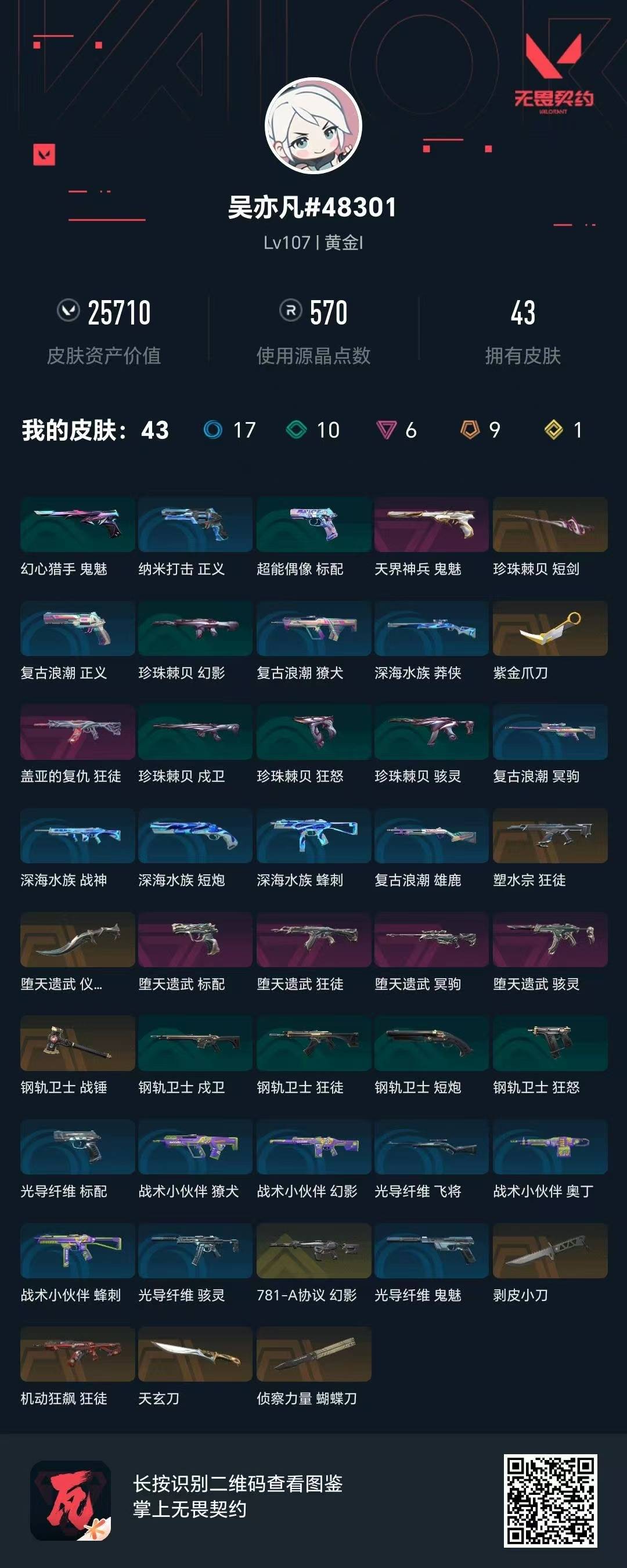 [16347490]9橙皮 1金皮 6紫皮 43皮肤 20英雄 88卡面 570已用源晶 黄金段位 【套装】曲奇套装堕天遗武套装 【近战武器皮肤】战锤-钢轨卫士堕天遗武 仪式匕首蝴蝶刀-侦察力量剥皮小刀紫金爪刀天玄刀短剑-珍珠棘贝 【佩呛皮肤】鬼魅-天界神兵标配-堕天遗武 【冲锋呛