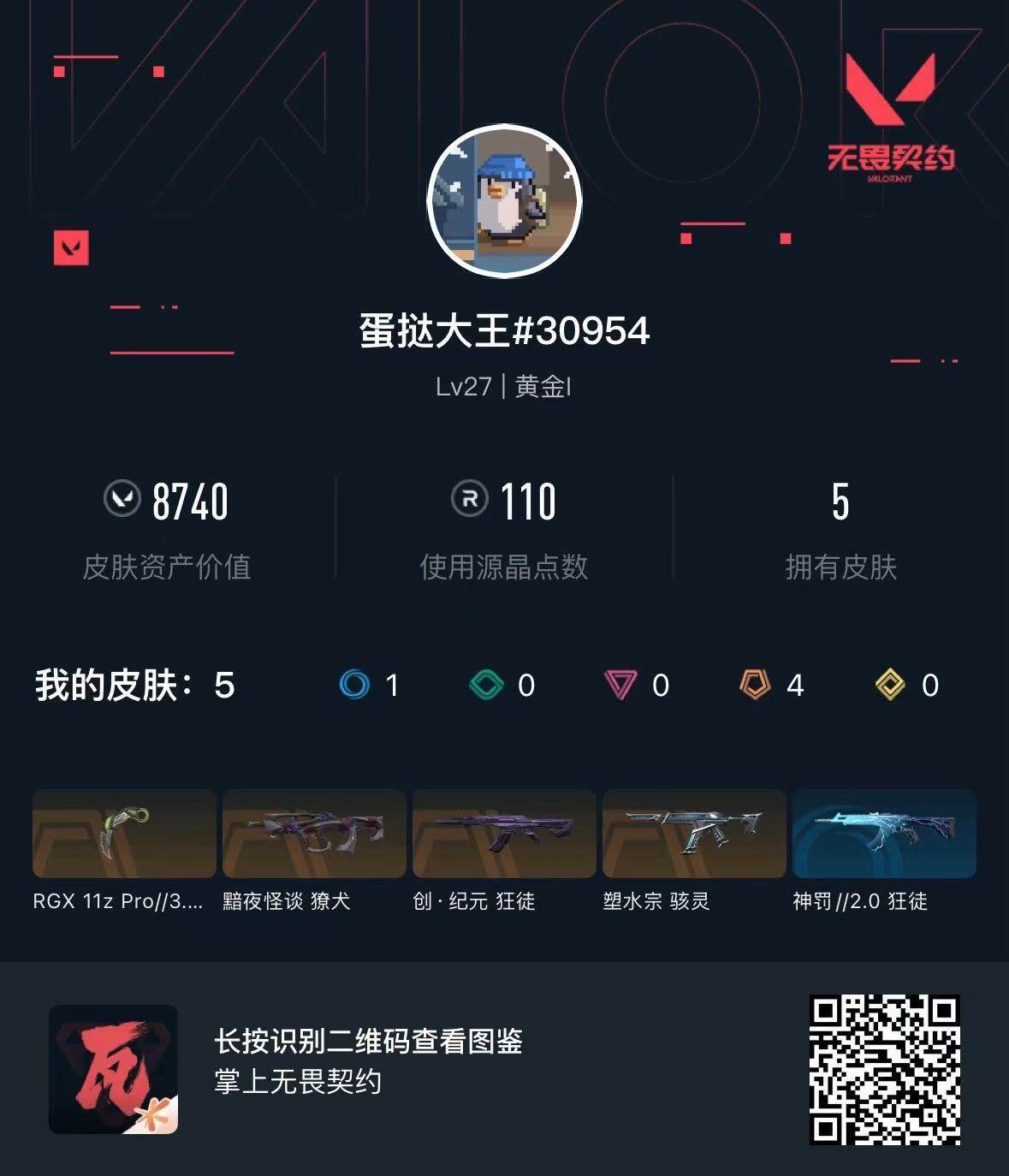 【wwc1259】终极4/皮肤5/等级27/段位:黄金/回火礼包// v25套装/炼狱/暮蝶/捷风/幽影/不死鸟/贤者/猎枭/芮娜/近战武器-rgx 11z pro//3.0 爪刀/狂徒-创·纪元/狂徒-神罚//2.0/獠犬-黯夜怪谈/骇灵-塑水宗/无畏契约go!第一卷:零 卡面/代号红色 卡面/新兵报到 卡面/v契约 卡面/无畏契约 卡面/双击点赞 喷漆/红鳞 喷漆/松叶 喷漆/放下武器 喷漆/胜利属于无畏契约 喷漆/glhf 喷漆/无畏契约 喷漆/无畏契约 纪念币 挂饰
