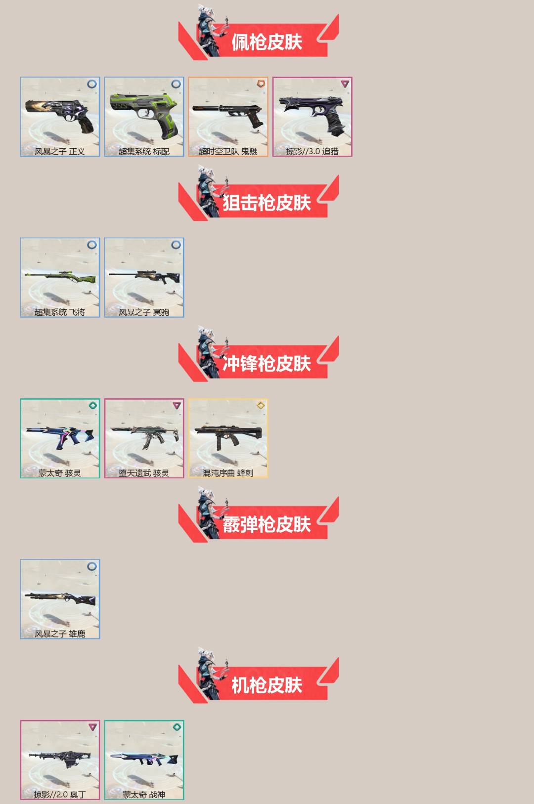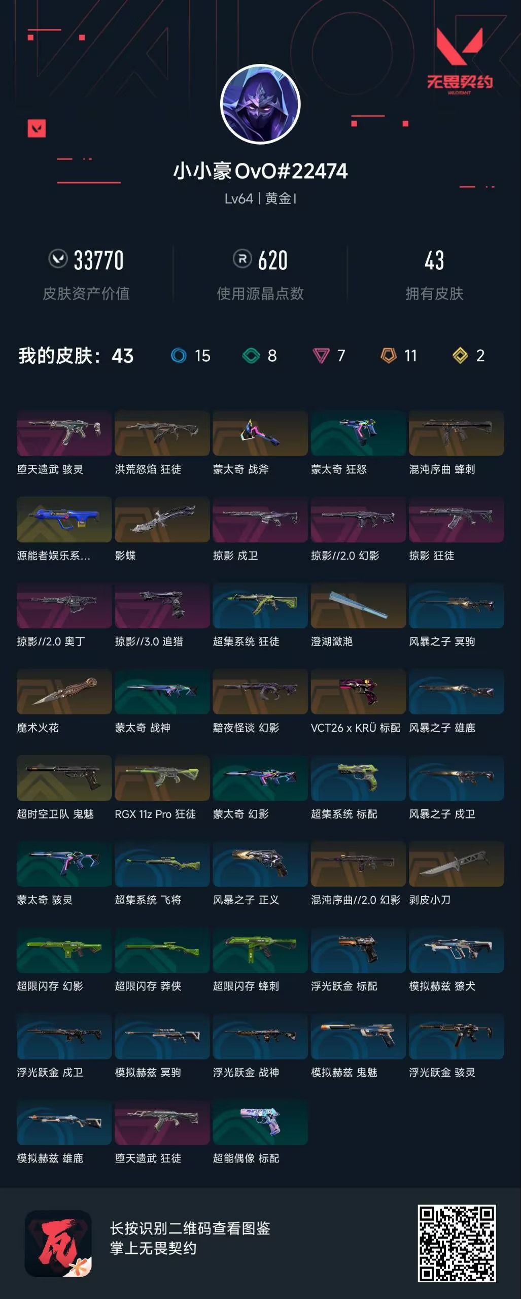 [16505469]11橙皮 2金皮 7紫皮 43皮肤 15英雄 59卡面 620已用源晶 黄金段位 【套装】掠影//3.0套装 【近战武器皮肤】影蝶-掠影//3.0魔术火花蒙太奇 战斧剥皮小刀澄湖潋滟 【佩呛皮肤】鬼魅-超时空卫队超集系统 标配风暴之子 正义追猎-掠影//3.0 【冲锋呛皮肤】蜂刺-混沌序曲骇灵-堕天遗武蒙太奇 骇灵 【霰弹呛皮肤】风暴之子 雄鹿 【步呛皮肤】风暴之子 戍卫戍卫-掠影狂徒-掠影幻影-混沌序曲2.0蒙太奇 幻影超集系统 狂徒幻影-掠影2.0狂徒-rgx 11z pro幻影-黯夜怪谈狂徒-洪荒怒焰狂徒-堕天遗武獠犬-源能者娱乐系统 【狙击呛皮肤】风暴之子 冥驹超集系统 飞将 【机呛皮肤】奥丁-掠影2.0蒙太奇 战神 【挂饰】袖珍捷风挂饰神中神挂饰风暴之子 挂饰v26第一幕纪念币 挂饰协议假人 挂饰超集系统 挂饰vctxkrü挂饰糖葫芦挂饰双城之战小蛋糕挂饰h2-oh!挂饰