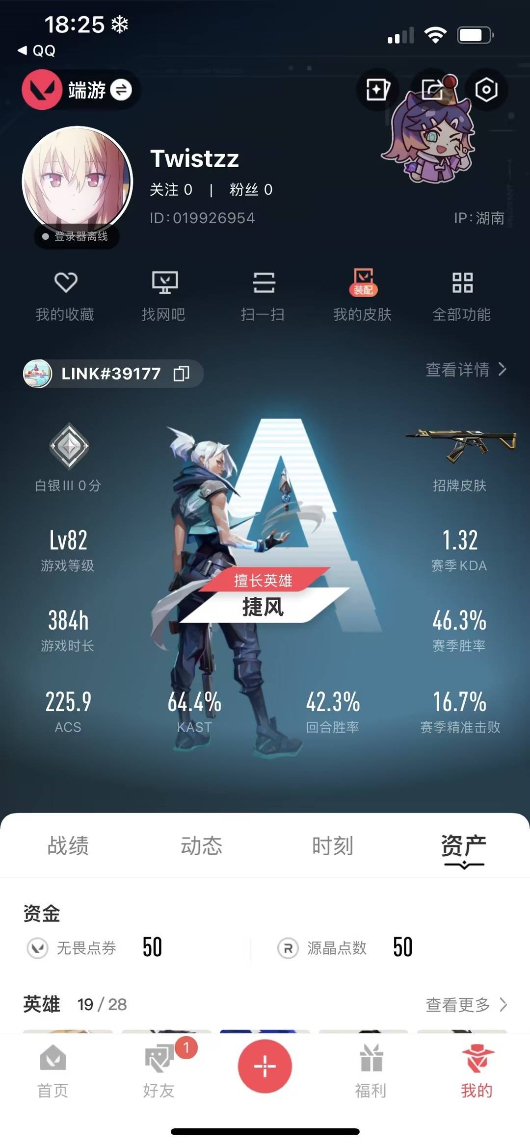 5橙皮 5紫皮 15皮肤 19英雄 45卡面 455已用源晶 白银段位 【套装】神罚套装神中神罚套装 【近战武器皮肤】影刃神之刃 【佩呛皮肤】狂怒-神中神罚正义-塑水宗 【冲锋呛皮肤】骇灵-神中神罚 【步呛皮肤】幻影-神中神罚2025全球冠军赛 狂徒狂徒-盖亚的复仇 【狙击呛皮肤】莽侠-