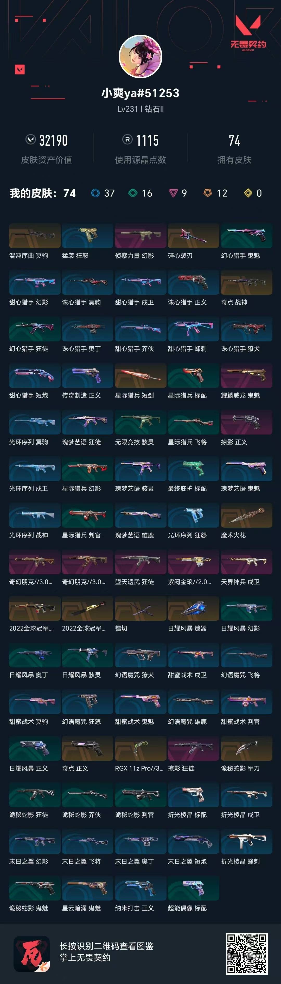 [16508555]12橙皮 9紫皮 74皮肤 27英雄 133卡面 1115已用源晶 钻石段位 【亮点皮肤】幻影-2022全球冠军赛蝴蝶刀-2022全球冠军赛 【套装】奇幻朋克3.0套装2022全球冠军赛 【近战武器皮肤】日耀风暴 遗器魔术火花诡秘蛇影镭切星际猎兵 短剑碎心裂刃爪刀-rgx 11z pro 3.0 【佩呛皮肤】正义-掠影正义-奇点鬼魅-耀鳞威龙 【步呛皮肤】狂徒-掠影奇幻朋克3.0狂徒幻影-奇幻朋克3.0狂徒-堕天遗武幻影-侦察力量戍卫-天界神兵 【狙击呛皮肤】冥驹-混沌序曲 【机呛皮肤】战神-奇点奥丁-紫阙金琅2.0 【挂饰】袖珍捷风挂饰薰衣草之心挂饰超能偶像挂饰神中神挂饰传世莲华挂饰v26第一幕纪念币 挂饰2022全球冠军赛弯檐帽挂饰金属蝶翼挂饰双城之战魄罗挂饰糖葫芦挂饰双城之战小蛋糕挂饰