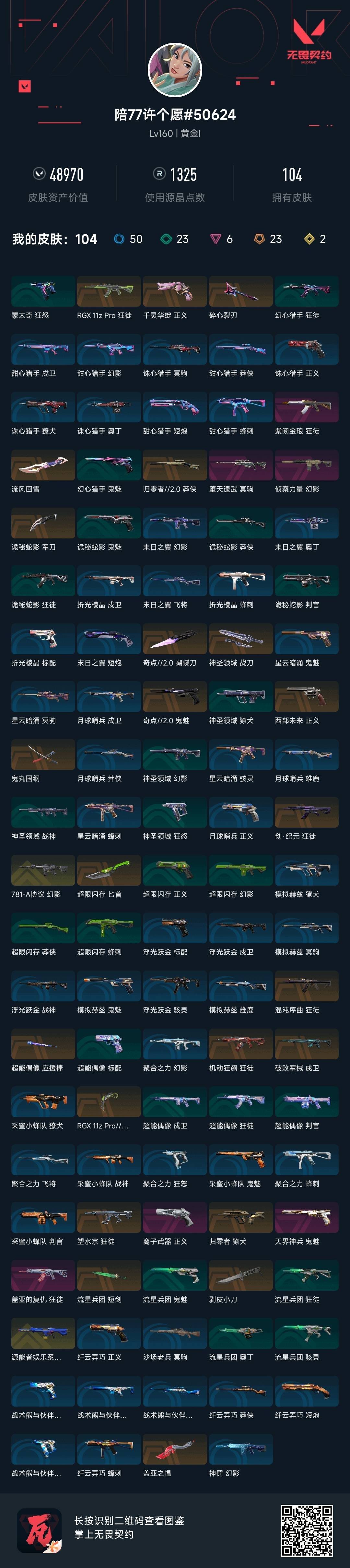 23橙皮 2金皮 6紫皮 104皮肤 28英雄 143卡面 1325已用源晶 黄金段位 【近战武器皮肤】诡秘蛇影爪刀-rgx 11z pro 3.0流风回雪神圣领域 战刀匕首-超限闪存短剑-流星兵团蝴蝶刀-奇点//2.0超能偶像 应援棒鬼丸国纲碎心裂刃盖亚之愠剥皮小刀 【佩