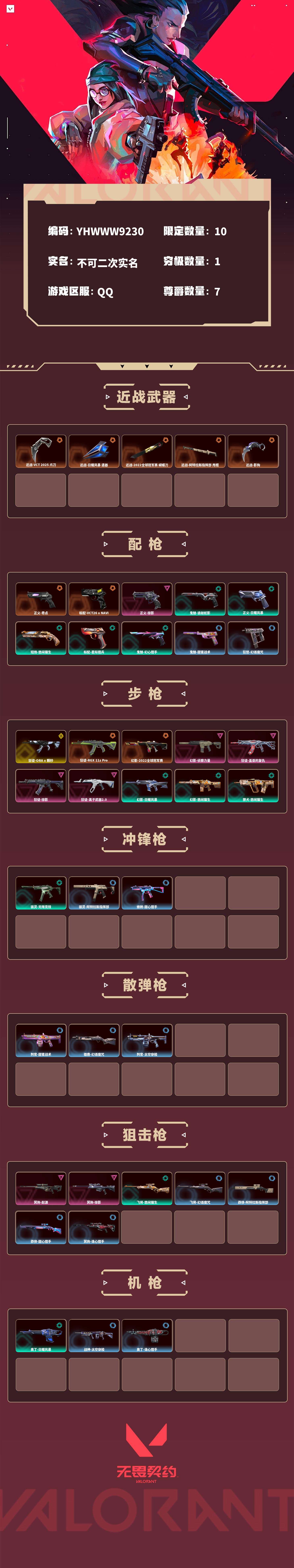 【无畏契约】【yhwww9230】等级:99,已用无畏点28220,已用源晶点765,橙皮:正义-奇点|近战-vct 2025 爪刀|近战-日耀风暴 遗器|狂徒-rgx 11z pro|近战-2022全球冠军赛 蝴蝶刀|幻影-2022全球冠军赛|近战-阿特拉斯指挥部 甩棍|近战-影钩|标配-vct26 x navi__紫皮:幻影-侦察力量|狂徒-盖亚的复仇|冥驹-起源|冥驹-掠影|狂徒-掠影|正义-掠影|狂徒-离子武器2.0__段位:黄金__绿皮:骇灵-无限竞技|鬼魅-诡秘蛇影|正义-日耀风暴|幻影-日耀风暴|奥丁-日耀风暴|短炮-悠闲猫生|飞将-悠闲猫生|幻影-悠闲猫生|獠犬-悠闲猫生|标配-星际猎兵|狂徒-幻心猎手|鬼魅-幻心猎手__蓝皮:鬼魅-甜蜜战术|判官-甜蜜战术|戍卫-甜蜜战术|雄鹿-幻语魔咒|獠犬-幻语魔咒|飞将-幻语魔咒|狂怒-幻语魔咒|正义-太空穿梭|战神-太空穿梭|判官-太空穿梭|戍卫-太空穿梭|骇灵-阿特拉斯指挥部|莽侠-阿特拉斯指挥部|标配-阿特拉斯指挥部|狂徒-阿特拉斯指挥部|蜂刺-甜心猎手|短炮-甜心猎手|莽侠-甜心猎手|幻影-甜心猎手|戍卫-甜心猎手|正义-诛心猎手|冥驹-诛心猎手|獠犬-诛心猎手|奥丁-诛心猎手__英雄:尚勃勒|暮蝶|霓虹|壹决|k/o|奇乐|炼狱|铁臂|贤者|猎枭|芮娜|零|捷风|不死鸟|幻棱|禁灭__金皮:狂徒-a x 颗秒
