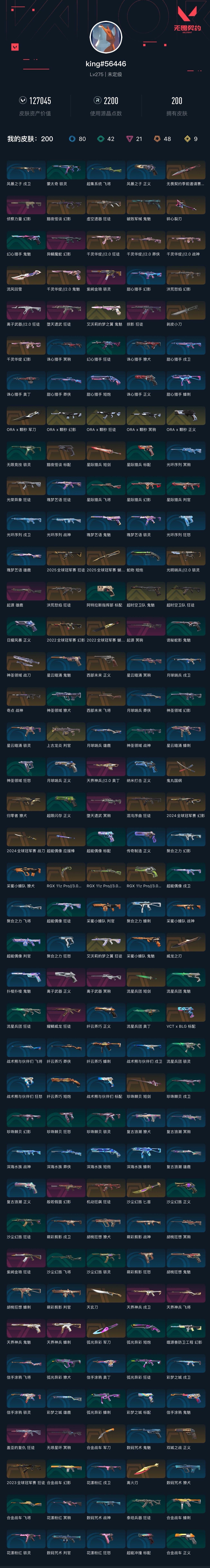 【无畏契约】【yhwww9159】等级:275,已用无畏点127045,已用源晶点2200,金皮:狂徒-艾沃莉的梦之翼|鬼魅-艾沃莉的梦之翼|判官-上古龙炎|狂徒-超时空卫队|鬼魅-超时空卫队|狂徒-a x 颗秒|幻影-a x 颗秒|冥驹-a x 颗秒|正义-a x 颗秒__橙皮:标配-vct x blg|标配-黯夜怪谈|骇灵-光明哨兵2.0|鬼魅-破败军械|幻影-2024全球冠军赛|幻影-黯夜怪谈|幻影-千灵华绽|幻影-洪荒怒焰|近战-2024全球冠军赛 战刀|近战-rgx 11z pro3.0 爪刀|近战-剥皮小刀|近战-弧光异彩 军刀|近战-超能偶像 应援棒|近战-离火刃|近战-流星兵团 短剑|近战-沙尘幻旅 匕首|近战-威龙之刃|近战-天玄刀|近战-珍珠棘贝 短剑|狂徒-机动狂飙|莽侠-rgx 11z pro3.0|狂徒-洪荒怒焰|獠犬-归零者|狂徒-混沌序曲|狂徒-2023全球冠军赛|正义-rgx 11z pro3.0|正义-双城之战|战神-奇点|近战-合金战车 军刀|近战-鬼丸国纲|近战-神圣领域 战刀|飞将-西部未来|正义-西部未来|狂徒-虚空遗器|狂徒-光荣异象|近战-2022全球冠军赛 蝴蝶刀|幻影-2022全球冠军赛|近战-星际猎兵 短剑|狂徒-2025全球冠军赛|近战-2025全球冠军赛 蝴蝶刀|近战-a x 颗秒 军刀|近战-流风回雪|莽侠-千灵华绽2.0|鬼魅-千灵华绽2.0|狂徒-千灵华绽2.0|战神-千灵华绽2.0|近战-悲悯之刃__紫皮:奥丁-天界神兵2.0|飞将-天界神兵|蜂刺-天界神兵|鬼魅-天界神兵|骇灵-紫阙金琅|幻影-般若假面|幻影-侦察力量|狂徒-盖亚的复仇|狂徒-堕天遗武|冥驹-堕天遗武|冥驹-离子武器|戍卫-天界神兵|狂徒-耀鳞威龙|冥驹-起源|狂徒-紫阙金琅|冥驹-无垠星环|正义-离子武器|雄鹿-起源|狂徒-掠影|幻影-异鳞魔蛇|狂徒-离子武器2.0__绿皮:骇灵-珍珠棘贝|幻影-珍珠棘贝|狂怒-珍珠棘贝|戍卫-珍珠棘贝|蜂刺-合金战车|正义-合金战车|幻影-合金战车|飞将-合金战车|骇灵-无限竞技|獠犬-神圣领域|狂怒-神圣领域|战神-神圣领域|幻影-神圣领域|戍卫-超能偶像|标配-超能偶像|狂徒-超能偶像|判官-超能偶像|正义-超限闪存|短炮-弧光异彩|獠犬-弧光异彩|蜂刺-弧光异彩|狂徒-弧光异彩|骇灵-流星兵团|鬼魅-流星兵团|狂徒-流星兵团|奥丁-流星兵团|正义-沙尘幻旅|狂徒-沙尘幻旅|飞将-沙尘幻旅|骇灵-沙尘幻旅|幻影-噬源兽防卫工程|狂徒-泰坦兵器|鬼魅-诡秘蛇影|正义-日耀风暴|判官-星际猎兵|飞将-星际猎兵|标配-星际猎兵|狂徒-幻心猎手|鬼魅-幻心猎手|骇灵-蒙太奇__蓝皮:獠犬-复古浪潮|冥驹-复古浪潮|雄鹿-复古浪潮|正义-复古浪潮|标配-超能冲撞|短炮-蛇吻|狂怒-花漾粉红|骇灵-花漾粉红|戍卫-花漾粉红|冥驹-花漾粉红|战神-数码咒术|獠犬-数码咒术|判官-数码咒术|鬼魅-数码咒术|正义-纳米打击|鬼魅-星云暗涌|骇灵-星云暗涌|正义-月球哨兵|莽侠-月球哨兵|戍卫-月球哨兵|雄鹿-月球哨兵|鬼魅-采蜜小蜂队|战神-采蜜小蜂队|獠犬-采蜜小蜂队|判官-采蜜小蜂队|戍卫-彩梦之城|雄鹿-彩梦之城|标配-彩梦之城|正义-传奇制造|鬼魅-胡桃狂想|獠犬-胡桃狂想|蜂刺-胡桃狂想|冥驹-胡桃狂想|蜂刺-聚合之力|幻影-聚合之力|狂怒-聚合之力|飞将-聚合之力|戍卫-萌彩剪影|战神-萌彩剪影|狂怒-萌彩剪影|判官-萌彩剪影|鬼魅-扑棱扑棱|战神-深海水族|短炮-深海水族|蜂刺-深海水族|莽侠-深海水族|莽侠-纤云弄巧|正义-纤云弄巧|短炮-纤云弄巧|蜂刺-纤云弄巧|鬼魅-信手涂鸦|骇灵-信手涂鸦|奥丁-信手涂鸦|飞将-信手涂鸦|冥驹-星云暗涌|蜂刺-星云暗涌|飞将-战术熊与伙伴们|狂怒-战术熊与伙伴们|戍卫-战术熊与伙伴们|标配-战术熊与伙伴们|标配-阿特拉斯指挥部|狂怒-光环序列|戍卫-光环序列|冥驹-光环序列|战神-光环序列|狂徒-瑰梦艺语|鬼魅-瑰梦艺语|骇灵-瑰梦艺语|雄鹿-瑰梦艺语|蜂刺-甜心猎手|短炮-甜心猎手|莽侠-甜心猎手|幻影-甜心猎手|戍卫-甜心猎手|正义-诛心猎手|冥驹-诛心猎手|獠犬-诛心猎手|奥丁-诛心猎手|戍卫-风暴之子|正义-风暴之子|飞将-超集系统__段位:未定级__英雄:尚勃勒|维斯|黑梦|斯凯|暮蝶|盖可|霓虹|壹决|星礈|k/o|幽影|夜露|钢锁|海神|奇乐|炼狱|铁臂|贤者|猎枭|钛狐|芮娜|零|捷风|蝰蛇|不死鸟|幻棱|雷兹|禁灭