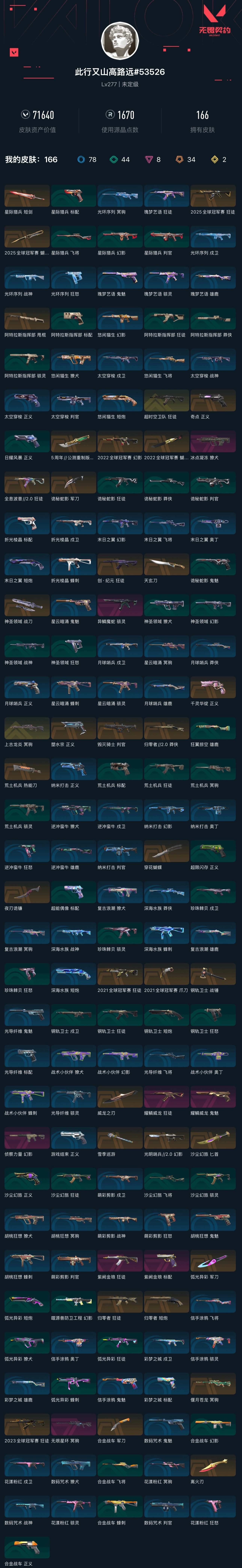 【无畏契约】【yhwww9151】等级:277,已用无畏点71640,已用源晶点1670,橙皮:短炮-归零者|近战-2021全球冠军赛 爪刀|幻影-光明哨兵2.0|近战-弧光异彩 军刀|近战-钢轨卫士 战锤|近战-离火刃|近战-沙尘幻旅 匕首|近战-威龙之刃|近战-天玄刀|近战-雪季巡游|近战-夜刃诡镰|狂徒-全息波普2.0|狂徒-归零者|狂徒-2021全球冠军赛|狂徒-2023全球冠军赛|正义-塑水宗|正义-奇点|正义-千灵华绽|冥驹-偃月苍龙|近战-合金战车 军刀|近战-荒土机兵 热能刀|判官-毁灭骑士|近战-穿花蝴蝶|莽侠-归零者2.0|狂徒-创·纪元|近战-神圣领域 战刀|近战-诡秘蛇影 军刀|近战-5周年公测重制版 苍龙之刃|近战-2022全球冠军赛 蝴蝶刀|幻影-2022全球冠军赛|近战-阿特拉斯指挥部 甩棍|近战-星际猎兵 短剑|狂徒-2025全球冠军赛|近战-2025全球冠军赛 蝴蝶刀__紫皮:标配-紫阙金琅|鬼魅-耀鳞威龙|幻影-侦察力量|獠犬-冰点凝冻|狂徒-耀鳞威龙|狂徒-紫阙金琅|冥驹-无垠星环|骇灵-异鳞魔蛇__绿皮:短炮-钢轨卫士|骇灵-珍珠棘贝|狂怒-钢轨卫士|狂徒-钢轨卫士|狂怒-珍珠棘贝|戍卫-钢轨卫士|戍卫-珍珠棘贝|蜂刺-合金战车|正义-合金战车|幻影-合金战车|飞将-合金战车|狂徒-荒土机兵|标配-荒土机兵|骇灵-荒土机兵|冥驹-荒土机兵|獠犬-神圣领域|狂怒-神圣领域|战神-神圣领域|幻影-神圣领域|雄鹿-狂翼掠空|标配-超能偶像|正义-超限闪存|短炮-弧光异彩|獠犬-弧光异彩|蜂刺-弧光异彩|狂徒-弧光异彩|正义-沙尘幻旅|狂徒-沙尘幻旅|飞将-沙尘幻旅|骇灵-沙尘幻旅|幻影-噬源兽防卫工程|判官-诡秘蛇影|鬼魅-诡秘蛇影|莽侠-诡秘蛇影|狂徒-诡秘蛇影|正义-日耀风暴|短炮-悠闲猫生|飞将-悠闲猫生|幻影-悠闲猫生|獠犬-悠闲猫生|判官-星际猎兵|飞将-星际猎兵|标配-星际猎兵__蓝皮:鬼魅-光导纤维|飞将-光导纤维|标配-光导纤维|骇灵-光导纤维|獠犬-复古浪潮|冥驹-复古浪潮|雄鹿-复古浪潮|狂怒-花漾粉红|骇灵-花漾粉红|戍卫-花漾粉红|冥驹-花漾粉红|战神-数码咒术|獠犬-数码咒术|判官-数码咒术|鬼魅-数码咒术|正义-游戏结束|判官-纳米打击|正义-纳米打击|奥丁-纳米打击|幻影-纳米打击|雄鹿-逆冲蛮牛|狂怒-逆冲蛮牛|戍卫-逆冲蛮牛|獠犬-逆冲蛮牛|鬼魅-星云暗涌|骇灵-星云暗涌|正义-月球哨兵|莽侠-月球哨兵|戍卫-月球哨兵|雄鹿-月球哨兵|戍卫-彩梦之城|雄鹿-彩梦之城|标配-彩梦之城|鬼魅-胡桃狂想|獠犬-胡桃狂想|蜂刺-胡桃狂想|冥驹-胡桃狂想|戍卫-萌彩剪影|战神-萌彩剪影|狂怒-萌彩剪影|判官-萌彩剪影|战神-深海水族|短炮-深海水族|蜂刺-深海水族|莽侠-深海水族|鬼魅-信手涂鸦|骇灵-信手涂鸦|奥丁-信手涂鸦|飞将-信手涂鸦|冥驹-星云暗涌|蜂刺-星云暗涌|蜂刺-战术小伙伴|幻影-战术小伙伴|獠犬-战术小伙伴|奥丁-战术小伙伴|蜂刺-折光棱晶|戍卫-折光棱晶|标配-折光棱晶|飞将-末日之翼|幻影-末日之翼|短炮-末日之翼|奥丁-末日之翼|正义-太空穿梭|战神-太空穿梭|判官-太空穿梭|戍卫-太空穿梭|骇灵-阿特拉斯指挥部|莽侠-阿特拉斯指挥部|标配-阿特拉斯指挥部|狂徒-阿特拉斯指挥部|狂怒-光环序列|戍卫-光环序列|冥驹-光环序列|战神-光环序列|狂徒-瑰梦艺语|鬼魅-瑰梦艺语|骇灵-瑰梦艺语|雄鹿-瑰梦艺语__段位:未定级__金皮:冥驹-上古龙炎|狂徒-超时空卫队__英雄:尚勃勒|维斯|黑梦|斯凯|暮蝶|盖可|霓虹|壹决|星礈|k/o|幽影|夜露|钢锁|海神|奇乐|炼狱|铁臂|贤者|猎枭|钛狐|芮娜|零|捷风|蝰蛇|不死鸟|幻棱|雷兹|禁灭