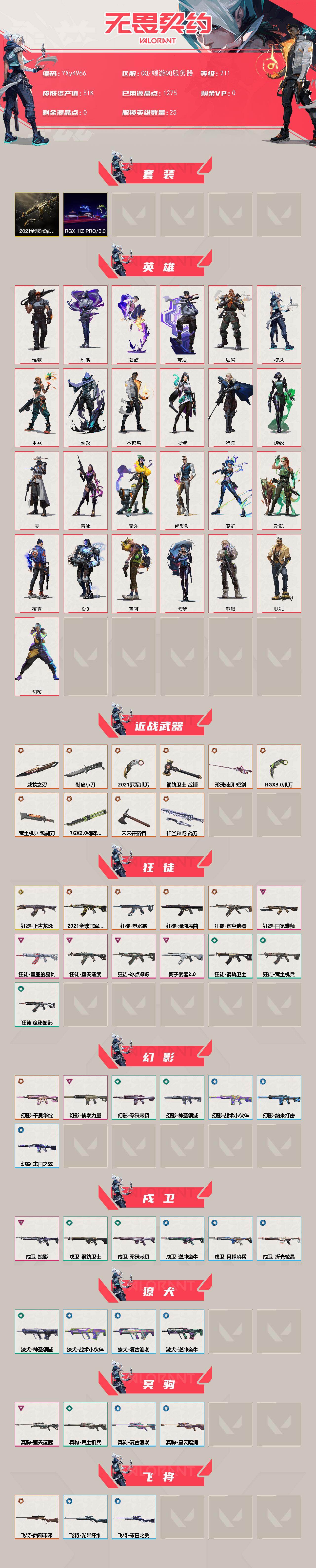 【5.1w库存21冠军套.显卡3.0套装.剥皮小刀.威龙之刃.显卡蝴蝶刀.西部斧.十狂徒塑水宗.上古龙炎.混沌.虚空.狮子.盖亚.弃王.冰点.离子.莲花.侦查】y4966【无二次】【因赛季更新游戏段付以上号为准!】 【套装】:2021全球冠军赛套装,rgx 11z pro//3.0套装 【英雄】:幻棱,炼狱,维斯,暮蝶,钛狐,壹决,铁臂,捷风,雷兹,幽影,不死鸟,贤者,猎枭,蝰蛇,零,芮娜