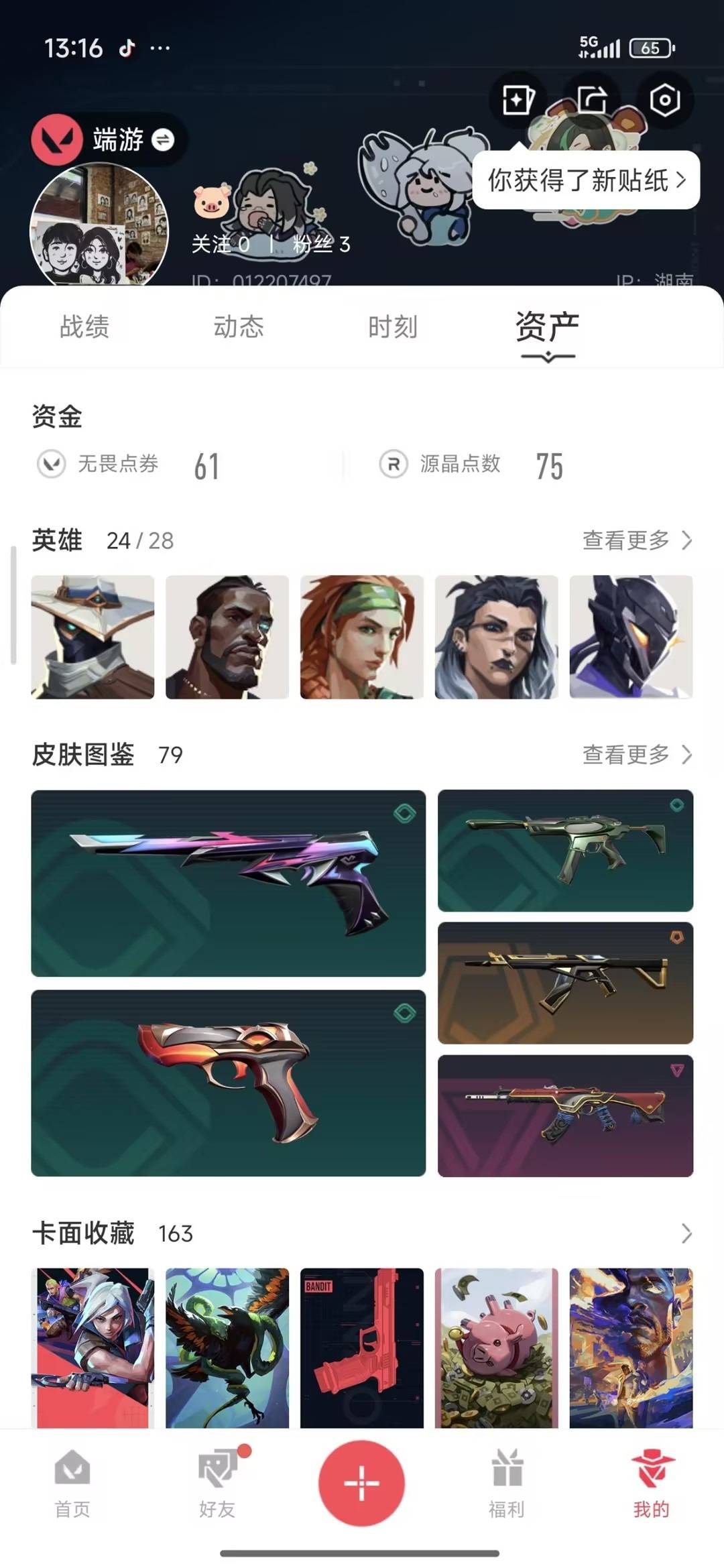 20橙皮 7紫皮 79皮肤 24英雄 163卡面 1330已用源晶 超凡段位 【亮点皮肤】狂徒-2023全球冠军赛 【近战武器皮肤】诡秘蛇影威龙之刃蝴蝶刀-奇点//2.0影刃鬼丸国纲影钩紫金爪刀阿特拉斯指挥部天玄刀 【佩呛皮肤】鬼魅-天界神兵正义-奇点正义-西部未来 【步