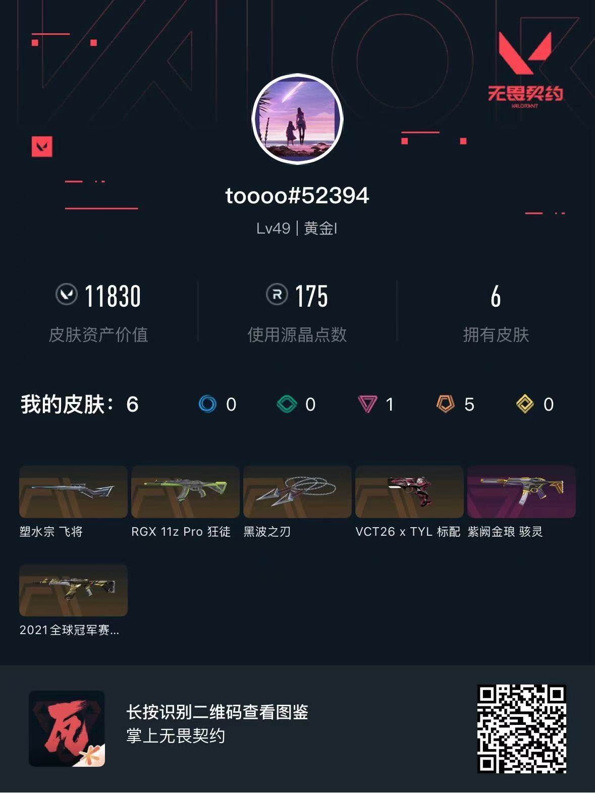 【wwc1269】终极5/卓越1/皮肤6/等级49/段位:黄金/炼狱/暮蝶/壹决/捷风/幽影/不死鸟/贤者/猎枭/蝰蛇/芮娜/尚勃勒/霓虹/星礈/近战武器-黑波之刃/狂徒-2021全球冠军赛/狂徒-rgx 11z pro/飞将-塑水宗/骇灵-紫阙金琅/精灵大战 卡面/南瓜盛典 卡面/正义的化身 卡面/树懒大作战 卡面/源能反应 卡面/零点嗅探设计图 卡面/沙雕爆能器 卡面/无畏契约go!第一卷:芮娜 卡面/清除名单 卡面/无畏契约go!第一卷:零 卡面/龍记 卡面/完美调谐 卡面 /暗呛 卡面/钢锁vs盖可 卡面/"luie" 卡面/代号红色 卡面/新兵报到 卡面/v契约 卡面/无畏契约 卡面/控场勿近 喷漆/我的刀呢? 喷漆/新潮流 喷漆/双击点赞 喷漆/买装还是存钱 喷漆/醒狮贺春 喷漆/红鳞 喷漆/松叶 喷漆/无畏契约go!第一卷:奇乐 喷漆/蕊形灯 喷漆/放下武器 喷漆/胜利属于无畏契约 喷漆/glhf 喷漆/无畏契约 喷漆/第九季//第三幕 纪念币 挂饰/第八季:白银 挂饰/第八季//第三幕 纪念币 挂饰/传世莲华 挂饰/第八季//第二幕 纪念币 挂饰 /天外飞客 挂饰/好运福爪 挂饰/瞄这里 挂饰/第八季//第一幕 纪念币 挂饰/无畏契约 纪念币 挂饰