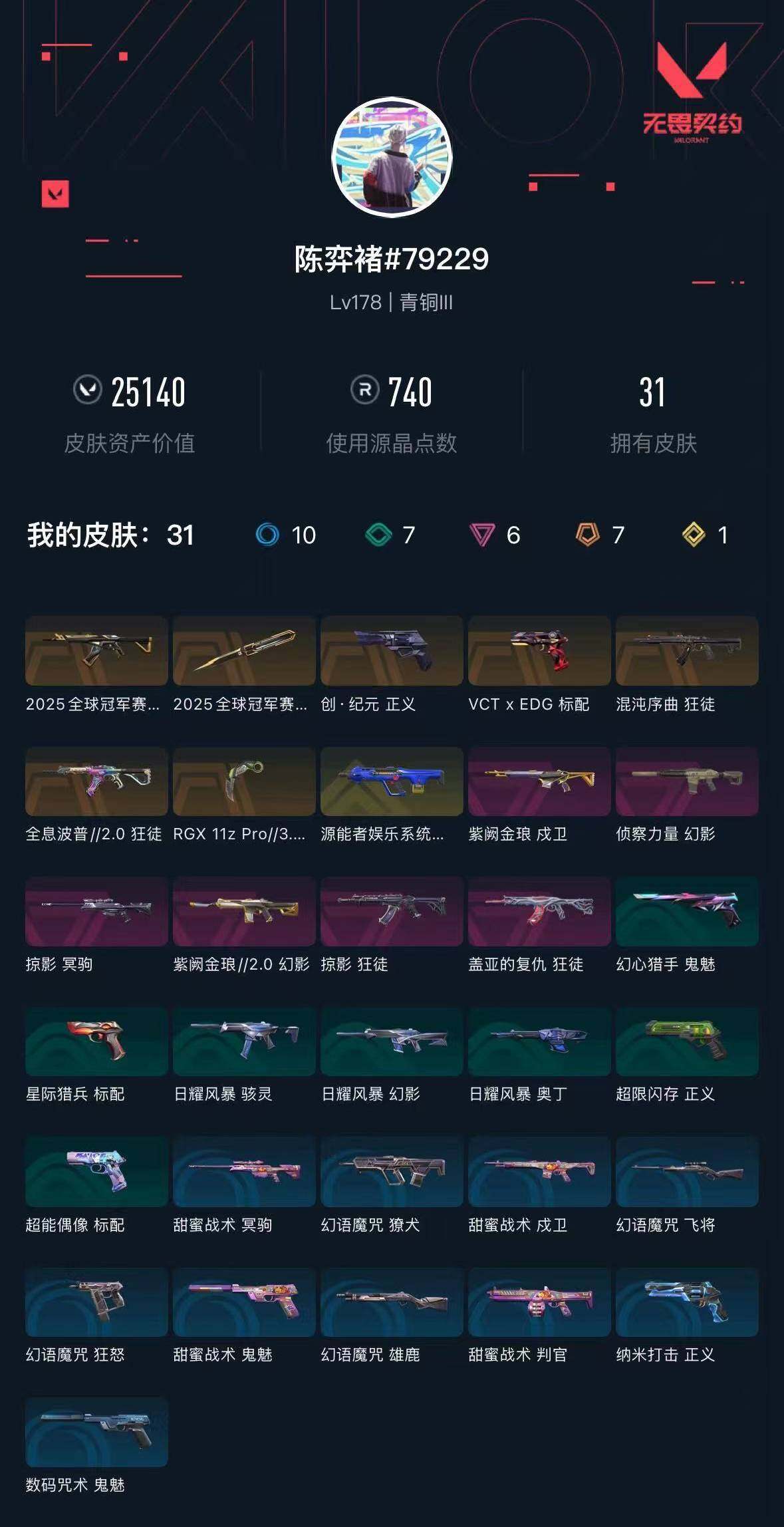 [16547406]【套装】:2025全球冠军赛套装,vctxedg 队伍套装 【英雄】:幻棱,炼狱,维斯,暮蝶,钛狐,壹决,铁臂,捷风,雷兹,幽影,不死鸟,贤者,猎枭,蝰蛇,零,芮娜,奇乐,尚勃勒,霓虹,斯凯,夜露,星礈,k/o,海神,盖可,黑梦,钢锁 【近战武器】:近战武器-2025全球冠军赛 蝴蝶刀,近战武器-rgx 11z pro//3.0 爪刀 【狂徒】:狂徒-2025全球冠军赛,狂徒-混沌序曲,狂徒-全息波普//2.0,狂徒-掠影,狂徒-盖亚的复仇 【幻影】:幻影-侦察力量,幻影-紫阙金琅//2.0 【戍卫】:戍卫-紫阙金琅 【獠犬】:獠犬-源能者娱乐系统 【冥驹】:冥驹-掠影 【标配】:标配-超能偶像 【vct手呛】:标配-vct x edg 【正义】:正义-创·纪元,正义-超限闪存,正义-纳米打击 【鬼魅】:鬼魅-数码咒术 【卡面】:终章:激斗汉堡 卡面,进入射程 卡面,《双城之战》拥抱 卡面,精灵大战 卡面,欢迎来到底城 卡面,南瓜盛典 卡面,无畏契约:暮蝶 卡面,修车达人 卡面,正义的化身 卡面,终章:生意人麦宝 卡面,铁之华 卡面,时间到 卡面,最高舞台 卡面,声感陷阱设计图 卡面,clutch 卡面,梦幻奶茶 卡面,零点嗅探设计图 卡面,无畏契约go!第一卷:芮娜 卡面,清除名单 卡面,无畏契约go!第一卷:零 卡面,龍记 卡面,完美调谐 卡面 ,暗呛 卡面,"luie" 卡面,铁臂设计图 卡面,代号红色 卡面,冰淇淋店 卡面,新兵报到 卡面,友军火力 卡面,v契约 卡面,无畏契约 卡面 【喷漆】:嗨宝南瓜灯 喷漆,嘭! 喷漆,都算到了 喷漆,控场勿近 喷漆,伤心心 喷漆,小丑猫 喷漆,熊抱 喷漆,超级粉丝 喷漆,捷风差距 喷漆,惊声尖叫 喷漆,审判之爪 喷漆,拼一呛 喷漆,加油!加油! 喷漆,新潮流 喷漆,双击点赞 喷漆,买装还是存钱 喷漆,醒狮贺春 喷漆,暴走萝莉 喷漆,蕊形灯 喷漆,胜利属于无畏契约 喷漆,glhf 喷漆,无畏契约 喷漆 【挂饰】:终章:猫猫木乃伊 挂饰,悠闲鸡块 挂饰,伞绳 挂饰,《双城之战》小蛋糕 挂饰,第九季//第三幕 纪念币 挂饰,工具腰带 挂饰,无畏契约go!第一卷 芮娜 挂饰,熔岩灯 挂饰,第九季//第二幕 纪念币 挂饰,薰衣草之心 挂饰,终章:这瓜保熟 挂饰,糖葫芦 挂饰,袖珍捷风 挂饰,迷你浓缩 挂饰,第九季//第一幕 纪