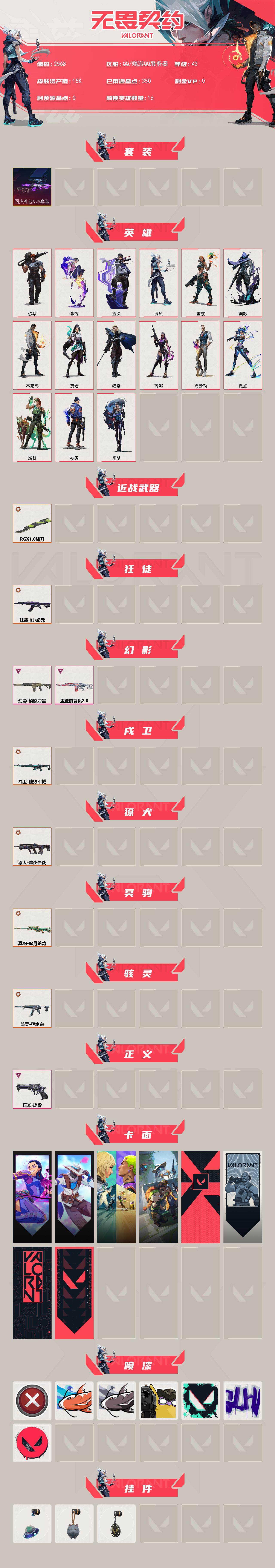[16547412]【套装】:回火礼包// v25套装 【英雄】:炼狱,暮蝶,壹决,捷风,雷兹,幽影,不死鸟,贤者,猎枭,芮娜,尚勃勒,霓虹,斯凯,夜露,黑梦 【近战武器】:近战武器-rgx 11z pro 战刀 【狂徒】:狂徒-创·纪元 【幻影】:幻影-盖亚的复仇//2.0,幻影-侦察力量 【戍卫】:戍卫-破败军械 【獠犬】:獠犬-黯夜怪谈 【冥驹】:冥驹-偃月苍龙 【骇灵】:骇灵-塑水宗 【正义】:正义-掠影 【卡面】:无畏契约go!第一卷:芮娜 卡面,无畏契约go!第一卷:零 卡面,钢锁vs盖可 卡面,别冒尖 卡面,代号红色 卡面,新兵报到 卡面,v契约 卡面,无畏契约 卡面 【喷漆】:买装还是存钱 喷漆,红鳞 喷漆,松叶 喷漆,放下武器 喷漆,胜利属于无畏契约 喷漆,glhf 喷漆,无畏契约 喷漆 【挂饰】:天外飞客 挂饰,《双城之战》魄罗 挂饰,无畏契约 纪念币 挂饰