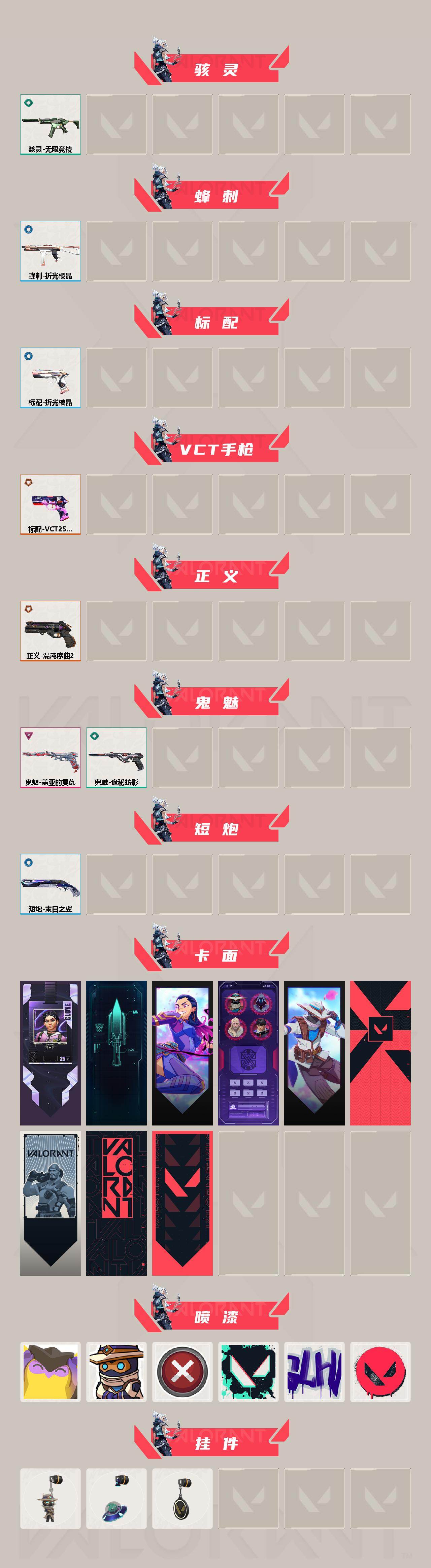 【套装】:无畏契约季前邀请赛套装 【英雄】:幻棱,炼狱,维斯,暮蝶,钛狐,壹决,铁臂,捷风,雷兹,幽影,不死鸟,贤者,猎枭,蝰蛇,零,芮娜,奇乐,尚勃勒,霓虹,斯凯,夜露,星礈,k/o,海神,盖可,黑梦,钢锁 【近战武器】:近战武器-无畏契约季前邀请赛 悲悯之刃,近战武器-a x 颗秒 军刀,近战武器-侦察力量 蝴蝶刀,近战武器-rgx 11z pro//3.0 爪刀,近战武器-诡秘蛇影