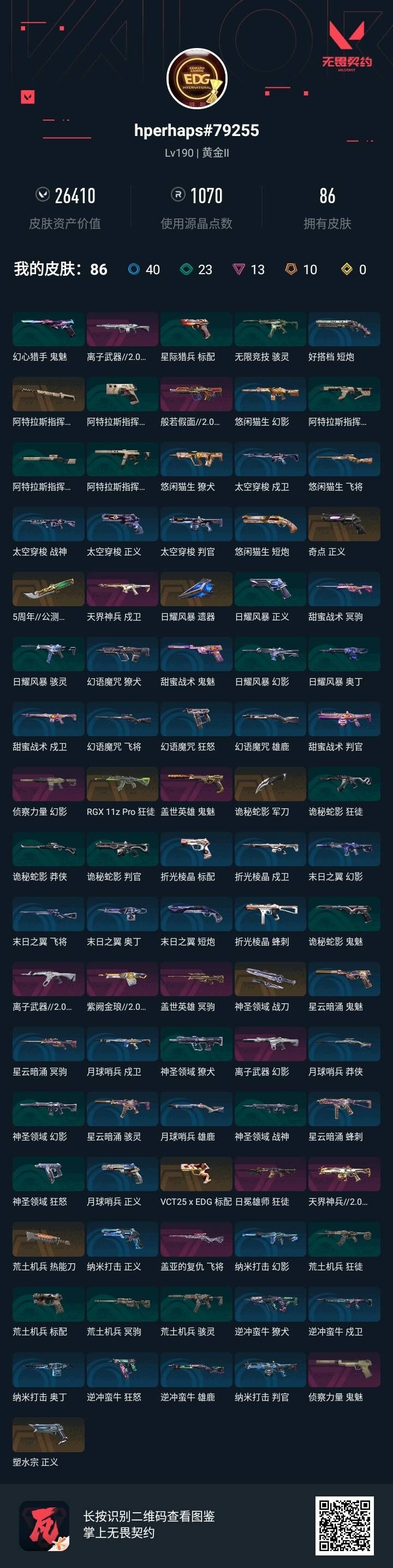 [16555794]10橙皮 13紫皮 86皮肤 28英雄 125卡面 1070已用源晶 黄金段位 【近战武器皮肤】日耀风暴 遗器苍龙之刃阿特拉斯指挥部神圣领域 战刀诡秘蛇影荒土机兵热能刀 【佩呛皮肤】标配-vct25xedg正义-奇点正义-塑水宗鬼魅-盖世英雄鬼魅-侦察力量 【霰弹呛皮肤】判官-天界神兵2.0 【步呛皮肤】狂徒-离子武器2.0獠犬-般若假面//2.0狂徒-rgx 11z pro狂徒-日冕雄师幻影-侦察力量幻影-离子武器戍卫-天界神兵 【狙击呛皮肤】飞将-盖亚的复仇冥驹-盖世英雄 【机呛皮肤】战神-离子武器2.0奥丁-紫阙金琅2.0 【挂饰】薰衣草之心挂饰逮个正着挂饰神中神挂饰深度分割挂饰v26第一幕纪念币 挂饰双城之战魄罗挂饰鱼骨头挂饰vctxedg挂饰爆能器挂饰数码咒术挂饰