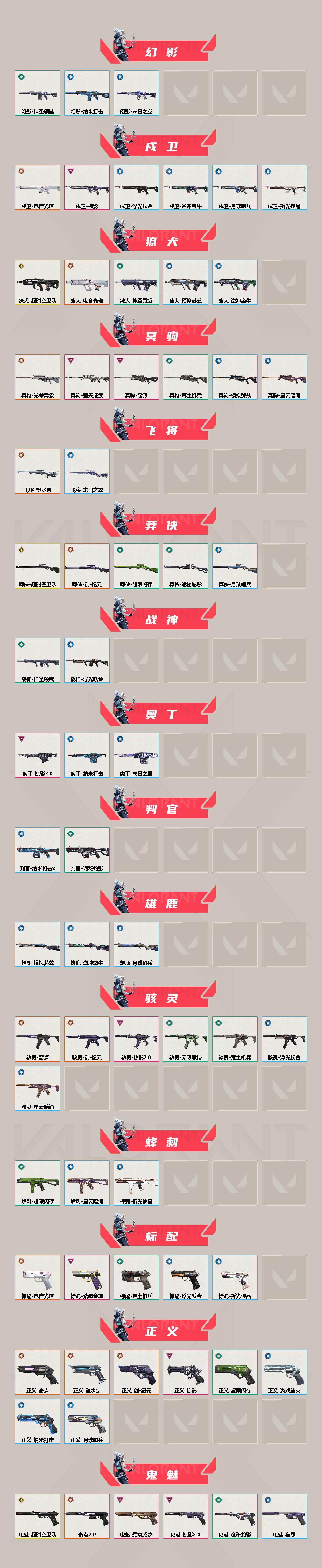 【1483】xl29095 【套装】:2025全球冠军赛套装,2022全球冠军赛套装,超时空卫队套装,电音光谱套装,vct 2025 赛季套装,创·纪元套装,奇点//2.0套装,回火礼包:奇点套装,耀鳞威龙套装,掠影//2.0套装 【英雄】:幻棱,炼狱,维斯,暮蝶,钛狐,壹决,铁臂,捷风,雷兹,幽影,不死鸟,贤者,猎枭,蝰蛇,零,芮娜,奇乐,尚勃勒,霓虹,斯凯,夜露,星礈,k/o,海神,盖可,黑梦,钢锁 【近战武器】:近战武器-2025全球冠军赛 蝴蝶刀,近战武器-2022全球冠军赛 蝴蝶刀,近战武器-魔术火花,近战武器-影钩,近战武器-超时空卫队 三棱军刺,近战武器-谐波音谱,近战武器-奇点//2.0 蝴蝶刀,近战武器-vct 2025 爪刀,近战武器-黑波之刃,近战武器-落英飞旋,近战武器-镭切,近战武器-威龙之刃,近战武器-超限闪存 匕首,近战武器-荒土机兵 热能刀,近战武器-机动狂飙 战刀,近战武器-诡秘蛇影 军刀,近战武器-神圣领域 战刀,近战武器-日耀风暴 遗器,近战武器-阿特拉斯指挥部 甩棍,近战武器-星际猎兵 短剑,近战武器-魔术火花 【狂徒】:狂徒-超时空卫队,狂徒-2025全球冠军赛,狂徒-洪荒怒焰,狂徒-混沌序曲,狂徒-机动狂飙,狂徒-奇点//2.0,狂徒-双城之战,狂徒-塑水宗,狂徒-创·纪元,狂徒-rgx 11z pro,狂徒-光荣异象,狂徒-般若假面//2.0,狂徒-堕天遗武,狂徒-掠影,狂徒-盖亚的复仇,狂徒-耀鳞威龙,狂徒-紫阙金琅,狂徒-荒土机兵,狂徒-诡秘蛇影 【幻影】:幻影-2022全球冠军赛,幻影-黯夜怪谈,幻影-毁灭骑士,幻影-奇点,幻影-电音光谱,幻影-末日泡泡,幻影-般若假面,幻影-侦察力量,幻影-紫阙金琅//2.0,幻影-异鳞魔蛇,幻影-掠影//2.0,幻影-超限闪存,幻影-神圣领域,幻影-纳米打击,幻影-末日之翼,幻影-电音光谱 【戍卫】:戍卫-电音光谱,戍卫-掠影,戍卫-浮光跃金,戍卫-逆冲蛮牛,戍卫-月球哨兵,戍卫-折光棱晶,戍卫-电音光谱 【獠犬】:獠犬-超时空卫队,獠犬-电音光谱,獠犬-神圣领域,獠犬-模拟赫兹,獠犬-逆冲蛮牛,獠犬-电音光谱 【冥驹】:冥驹-光荣异象,冥驹-堕天遗武,冥驹-起源,冥驹-荒土机兵,冥驹-模拟赫兹,冥驹-星云暗涌 【飞将】:飞将-塑水宗,飞将-末日之翼 【莽侠】:莽侠-超时空卫队,莽侠-创·纪元,莽侠-超限闪存,莽侠-诡秘蛇影,莽侠-月球哨兵 【战神】:战神-神圣领域,战神-浮光跃金 【奥丁】:奥丁-掠影//2.0,奥丁-纳米打击,奥丁-末日之翼 【判官】:判官-诡秘蛇影,判官-纳米打击x 【雄鹿】:雄鹿-模拟赫兹,雄鹿-逆冲蛮牛,雄鹿-月球哨兵 【骇灵】:骇灵-奇点,骇灵-创·纪元,骇灵-掠影//2.0,骇灵-荒土机兵,骇灵-无限竞技,骇灵-浮光跃金,骇灵-星云暗涌 【蜂刺】:蜂刺-超限闪存,蜂刺-星云暗涌,蜂刺-折光棱晶 【标配】:标配-电音光谱,标配-紫阙金琅,标配-荒土机兵,标配-浮光跃金,标配-折光棱晶,标配-电音光谱 【正义】:正义-奇点,正义-塑水宗,正义-创·纪元,正义-掠影,正义-超限闪存,正义-纳米打击,正义-游戏结束,正义-月球哨兵 【鬼魅】:鬼魅-超时空卫队,鬼魅-奇点//2.0,鬼魅-耀鳞威龙,鬼魅-掠影//2.0,鬼魅-诡秘蛇影,鬼魅-模拟赫兹,鬼魅-扑棱扑棱,鬼魅-宿怨,鬼魅-星云暗涌 【狂怒】:狂怒-神圣领域,狂怒-逆冲蛮牛 【短炮】:短炮-末日之翼 【卡面】:终章:激斗汉堡 卡面,进入射程 卡面,分崩离析 卡面,纳米打击 卡面,抑制技术 卡面,激斗汉堡 卡面,瓦娃脸雪糕 p2 卡面,从黄昏到黎明 卡面,荒土机兵 卡面,银弹猎手 卡面,逆冲蛮牛 卡面,《双城之战》拥抱 卡面,精灵大战 卡面,欢迎来到底城 卡面,南瓜盛典 卡面,唱片的故事 卡面,钢弓与箭弦 卡面,无畏契约:暮蝶 卡面,排除故障 卡面,奇点//2.0 卡面,战术桌游 卡面,悠享食光 卡面,修车达人 卡面,模拟赫兹 卡面,浮光跃金 卡面,超限闪存 卡面,维斯工牌 卡面,正义的化身 卡面,树懒大作战 卡面,clutch 卡面,无畏契约go!第一卷:芮娜 卡面,无畏契约go!第一卷:零 卡面,《双城之战》金克丝 卡面,势不可挡//盖可 卡面,无畏契约go!第一卷:贤者 卡面,钢锁vs盖可 卡面,天台狂欢 卡面,沙尘幻旅 卡面,代号红色 卡面,新兵报到 卡面,v契约 卡面,无畏契约 卡面 【喷漆】:小小心意 喷漆,战“素”兔 喷漆,宇宙的指引 喷漆,请求重启 喷漆,逆冲蛮牛 喷漆,纳米打击 喷漆,鼻尖上的蝴蝶 喷漆,简笔画黯兽 喷漆,独守蝰腹 喷漆,他们将落荒而逃 喷漆,通缉:战术企鹅 喷漆,荒土机兵 喷漆,别挡我吃球! 喷漆,嗨宝南瓜灯 喷漆,嘭! 喷漆,都算到了 喷漆,控场勿近 喷漆,皮蛋呼呼 喷漆,像素星礈 喷漆,图谋不轨的零 喷漆,伤心心 喷漆,小丑猫 喷漆,模拟赫兹 喷漆,高丽风情小熊 喷漆,奇点//2.0 喷漆,蹲到一个 喷漆,全力集中 喷漆,超限闪存 喷漆,rua一下 喷漆,熊抱 喷漆,高丽风情小虎 喷漆,记在小本本 喷漆,防弹企鹅 喷漆,高丽风情小蛙 喷漆,霓光四射 喷漆,禁止标配 喷漆 ,买装还是存钱 喷漆,无畏契约go!第一卷:捷风 喷漆,胜利属于无畏契约 喷漆,glhf 喷漆,无畏契约 喷漆 【挂饰】:终章:猫猫木乃伊 挂饰,荒土机兵 挂饰,悠闲鸡块 挂饰,猫猫木乃伊 挂饰,水壶 挂饰,纳米打击 挂饰,逆冲蛮牛 挂饰,可爱糖糖 挂饰,伞绳 挂饰,《双城之战》小蛋糕 挂饰,第九季//第三幕 纪念币 挂饰,拳击战术熊 挂饰,工具腰带 挂饰,无畏契约go!第一卷 芮娜 挂饰,无畏契约go!第一卷 零 挂饰,暗藏猫腻 挂饰,高丽风情 挂饰,奇点//2.0 挂饰,鱼骨头 挂饰,熔岩灯 挂饰,超限闪存 挂饰,迷你k/o 挂饰,模拟赫兹 挂饰,第九季//第二幕 纪念币 挂饰,天外飞客 挂饰,红鳞松叶 挂饰,海豹的认可 挂饰,无畏