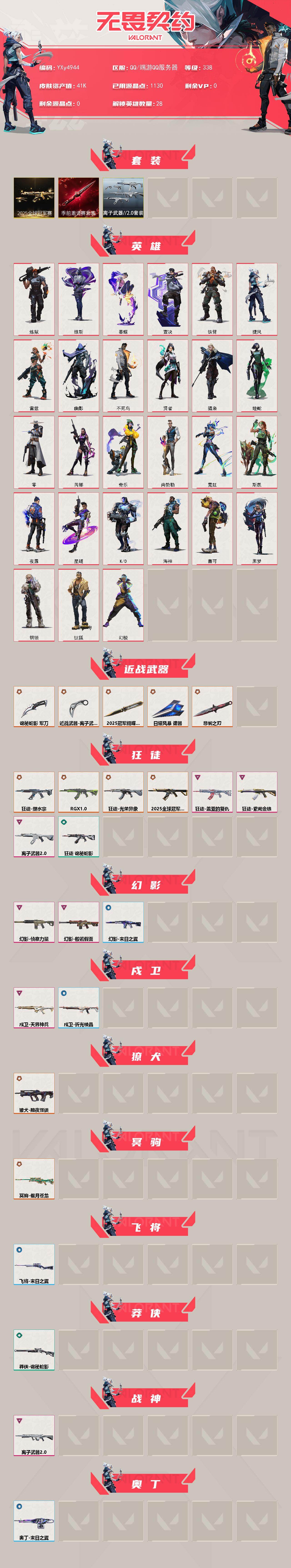 【4.1w库存25冠军套.怜悯之刃.离子套.塑水宗.显卡.光荣异象.盖亚.紫金.侦查.恶鬼】y4944【可二次】【因赛季更新游戏段付以上号为准!】 【套装】:2025全球冠军赛套装,无畏契约季前邀请赛套装,离子武器//2.0套装 【英雄】:幻棱,炼狱,维斯,暮蝶,钛狐,壹决,铁臂,捷风,雷兹,幽影,不死鸟,贤者,猎枭,蝰蛇,零,芮娜,奇乐,尚勃勒,霓虹,斯凯,夜露,星礈,k/o,海神,盖可
