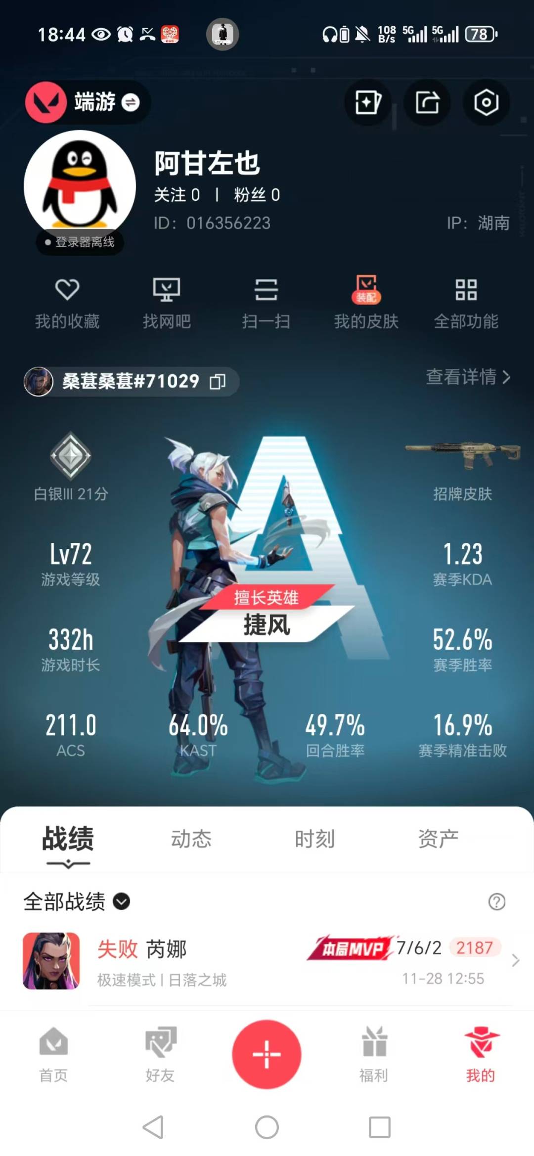 [16448704]6橙皮 1金皮 5紫皮 34皮肤 22英雄 45卡面 445已用源晶 白银段位 【套装】曲奇套装 【近战武器皮肤】穿花蝴蝶诡秘蛇影金琅斧 【佩呛皮肤】标配-vct25xedg正义-西部未来 【霰弹呛皮肤】判官-全息波普雄鹿-紫阙金琅2.0 【步呛皮肤】狂徒-紫阙金琅狂