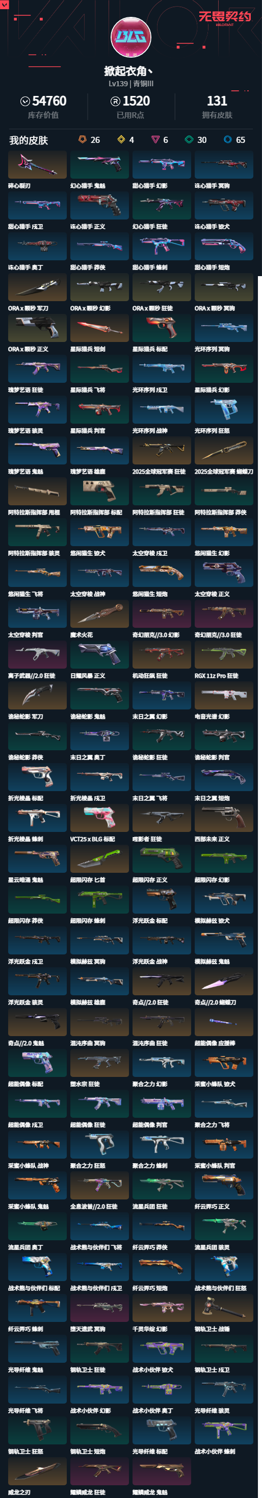 [16453946]wl628/lv139/青铜iii//刀皮数量12/呛皮数量119绝版3限定26终极4卓越6/皮肤资产价值54760/已用r点1520/【刀皮】/近战武器-2025全球冠军赛蝴蝶刀/近战武器-闪耀之星荧光棒/近战武器-魔术火花/近战武器-奇点2.0蝴蝶刀/近战武器-超限闪存匕