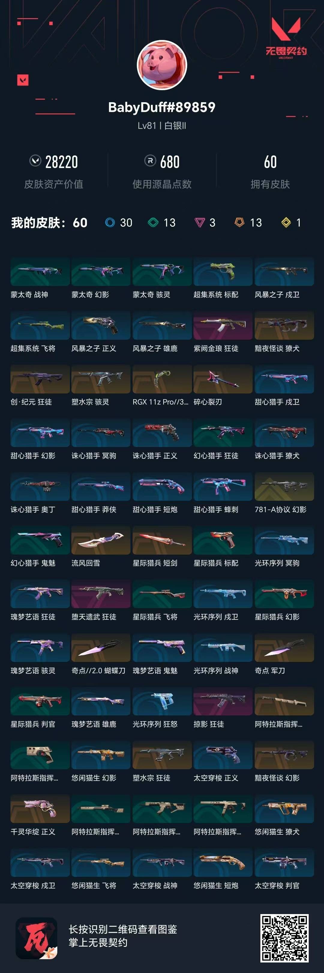 [16582826]13橙皮 1金皮 3紫皮 60皮肤 23英雄 71卡面 680已用源晶 白银段位 【近战武器皮肤】蝴蝶刀-奇点//2.0阿特拉斯指挥部星际猎兵 短剑碎心裂刃流风回雪爪刀-rgx 11z pro 3.0军刀-奇点 【佩呛皮肤】超集系统 标配风暴之子 正义正义-千灵华绽 【冲锋呛皮肤】骇灵-塑水宗蒙太奇 骇灵 【霰弹呛皮肤】风暴之子 雄鹿 【步呛皮肤】狂徒-创·纪元狂徒-掠影幻影-黯夜怪谈风暴之子 戍卫蒙太奇 幻影獠犬-黯夜怪谈狂徒-紫阙金琅狂徒-塑水宗狂徒-堕天遗武幻影-781-a协议 【狙击呛皮肤】超集系统 飞将 【机呛皮肤】蒙太奇 战神 【挂饰】神中神挂饰风暴之子 挂饰v26第一幕纪念币 挂饰协议假人 挂饰超集系统 挂饰