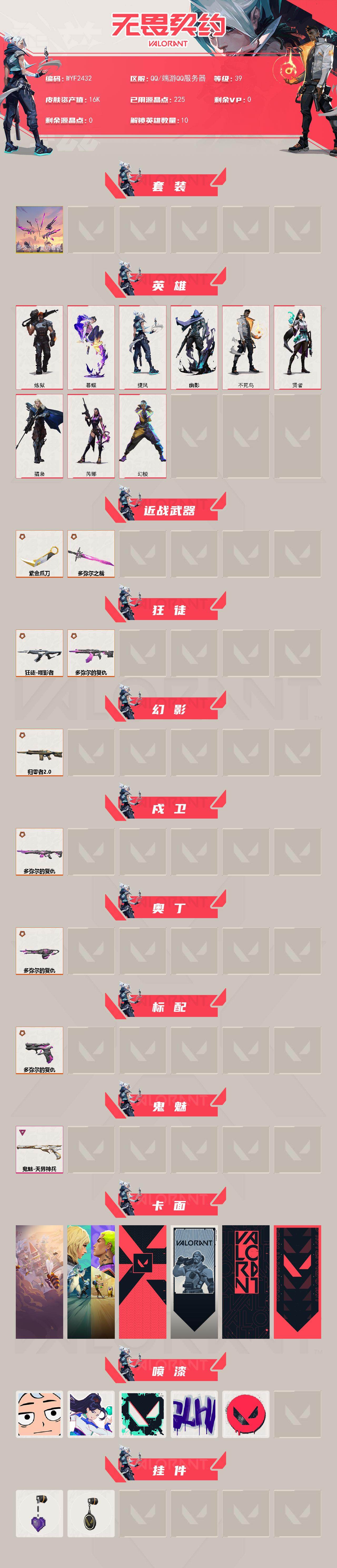 【wyf2432】终极9/卓越1/皮肤21/等级39/段位:青铜/多弥尔的复仇套装/幻棱/炼狱/暮蝶/捷风/幽影/不死鸟/贤者/猎枭/芮娜/近战武器-多弥尔之裁/紫金爪刀/狂徒-噬影者/狂徒-多弥尔的复仇/归零者//2.0-幻影/戍卫-多弥尔的复仇/奥丁-多弥尔的复仇/标配-多弥尔的复仇/天界神兵-鬼魅/采蜜小蜂队 卡面/钢锁vs盖可 卡面/代号红色 卡面/新兵报到 卡面/v契约 卡面