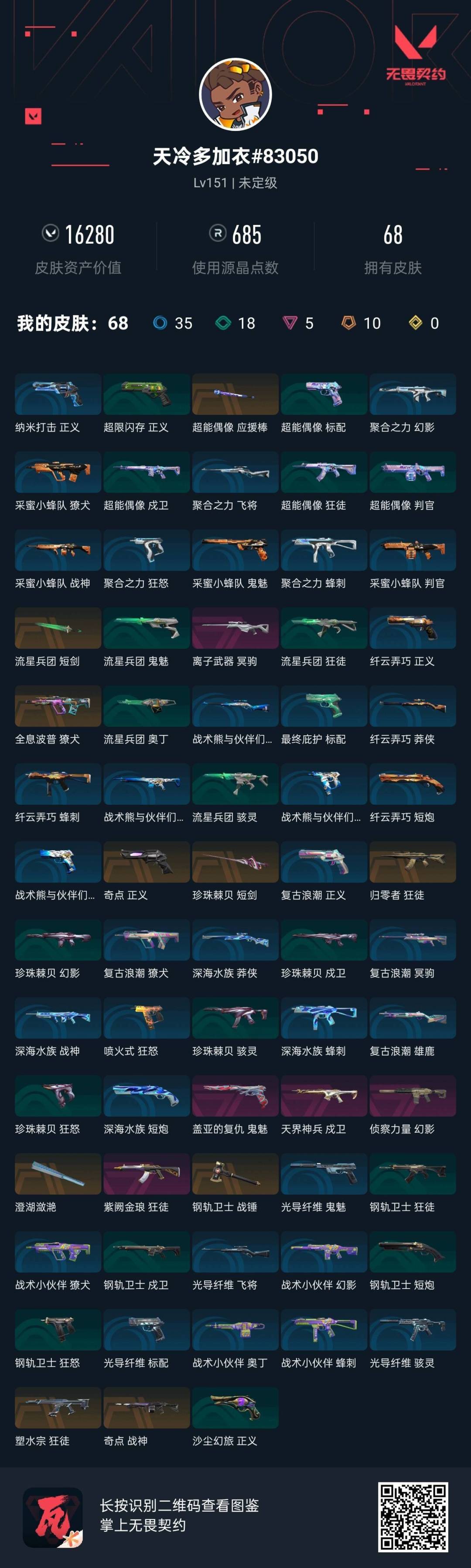 [16458136]10橙皮 5紫皮 68皮肤 23英雄 97卡面 685已用源晶 未定级段位 【近战武器皮肤】战锤-钢轨卫士短剑-流星兵团短剑-珍珠棘贝澄湖潋滟超能偶像 应援棒 【佩呛皮肤】正义-奇点鬼魅-盖亚的复仇 【步呛皮肤】狂徒-紫阙金琅狂徒-塑水宗狂徒-归零者幻影-侦察力