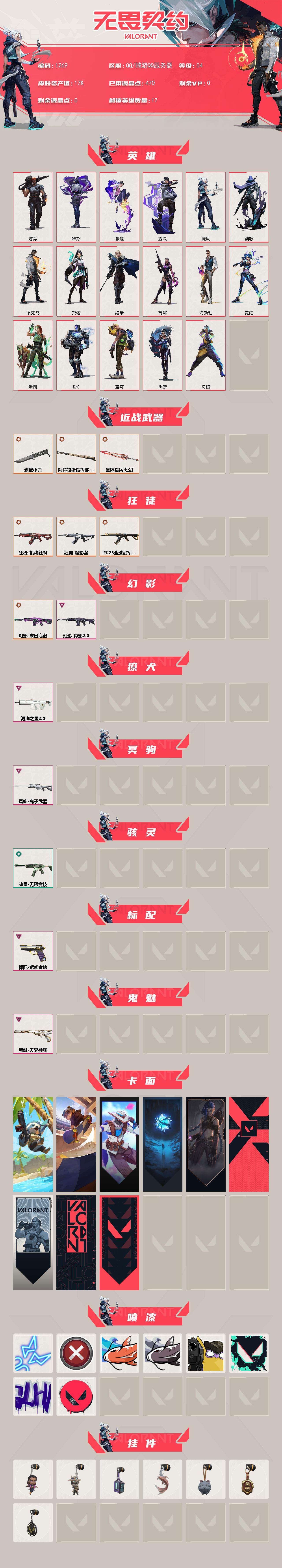【英雄】:幻棱,炼狱,维斯,暮蝶,壹决,捷风,幽影,不死鸟,贤者,猎枭,芮娜,尚勃勒,霓虹,斯凯,k/o,盖可,黑梦 【近战武器】:近战武器-剥皮小刀,近战武器-阿特拉斯指挥部 甩棍,近战武器-星际猎兵 短剑 【狂徒】:狂徒-2025全球冠军赛,狂徒-机动狂飙,狂徒-噬影者 【幻影】:幻影-末日泡泡,幻影-掠影//2.0 【獠犬】:獠犬-海洋之星//2.0 【冥驹】:冥驹-离子武器 【骇灵】: