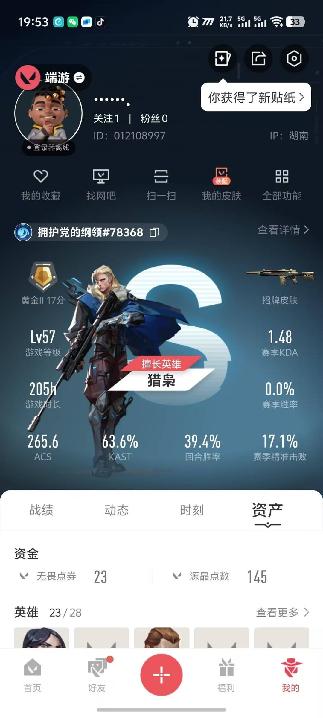 [16591350]5橙皮 3紫皮 20皮肤 23英雄 53卡面 385已用源晶 黄金段位 【套装】vctcn2025套装vct 2025赛季礼包 【近战武器皮肤】vct 2025 爪刀荒土机兵热能刀 【佩呛皮肤】正义-西部未来 【步呛皮肤】幻影-归零者//2.0狂徒-奇点//2.0狂徒-掠影獠犬-日冕雄师 【机呛皮肤】奥丁-天界神兵2.0 【挂饰】薰衣草之心挂饰vct2025太平洋联赛挂饰神中神挂饰vct2025美洲联赛挂饰双城之战魄罗挂饰vct2025emea联赛挂饰vct2025cn联赛挂饰双城之战小蛋糕挂饰