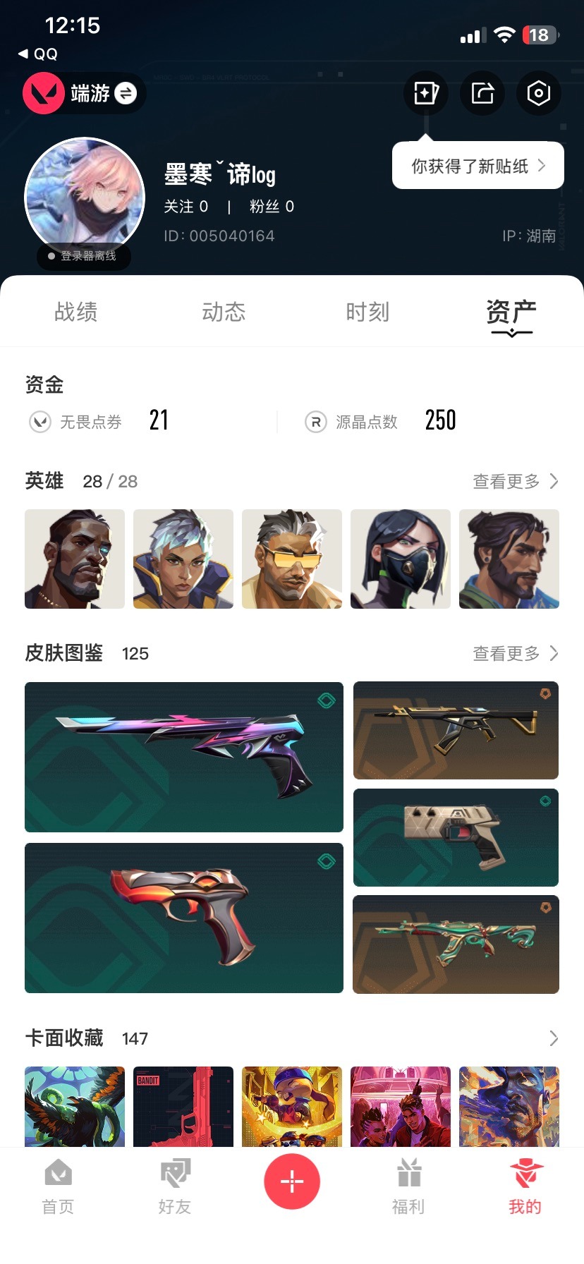29橙皮 2金皮 6紫皮 125皮肤 28英雄 147卡面 1320已用源晶 青铜段位 【套装】千灵华绽套装 【近战武器皮肤】匕首-超限闪存短剑-流星兵团日耀风暴 遗器诡秘蛇影神圣领域 战刀镭切荒土机兵热能刀黑波之刃超能偶像 应援棒落英飞旋 【佩呛皮肤】正义-西部未来正义-塑水