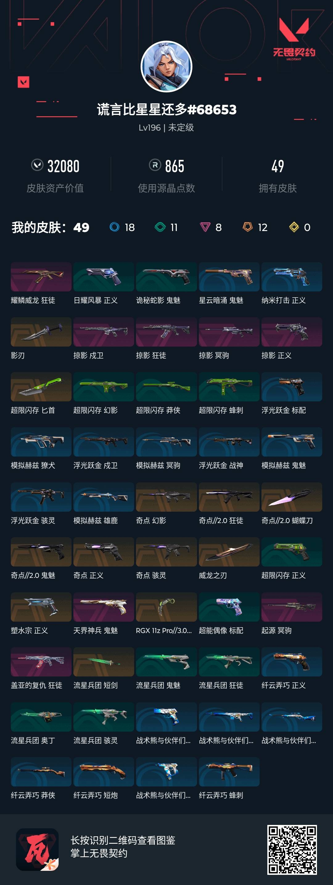 [16603775]s192613 (奇点2.0套装/掠影套装)无畏契约/196等级/未定级/24英雄/49皮肤/资产32080/已使用r点865/剩余r点125/奇点-幻影,盖亚的复仇-狂徒,耀鳞威龙-狂徒-,起源-冥驹,奇点-骇灵,奇点//2.0-狂徒奇点//2.0-鬼魅奇点//2.0-蝴蝶刀,掠影-狂徒掠影-冥驹掠影-戍卫掠影-正义影刃,塑水宗-正义,奇点-正义,天界神兵-鬼魅