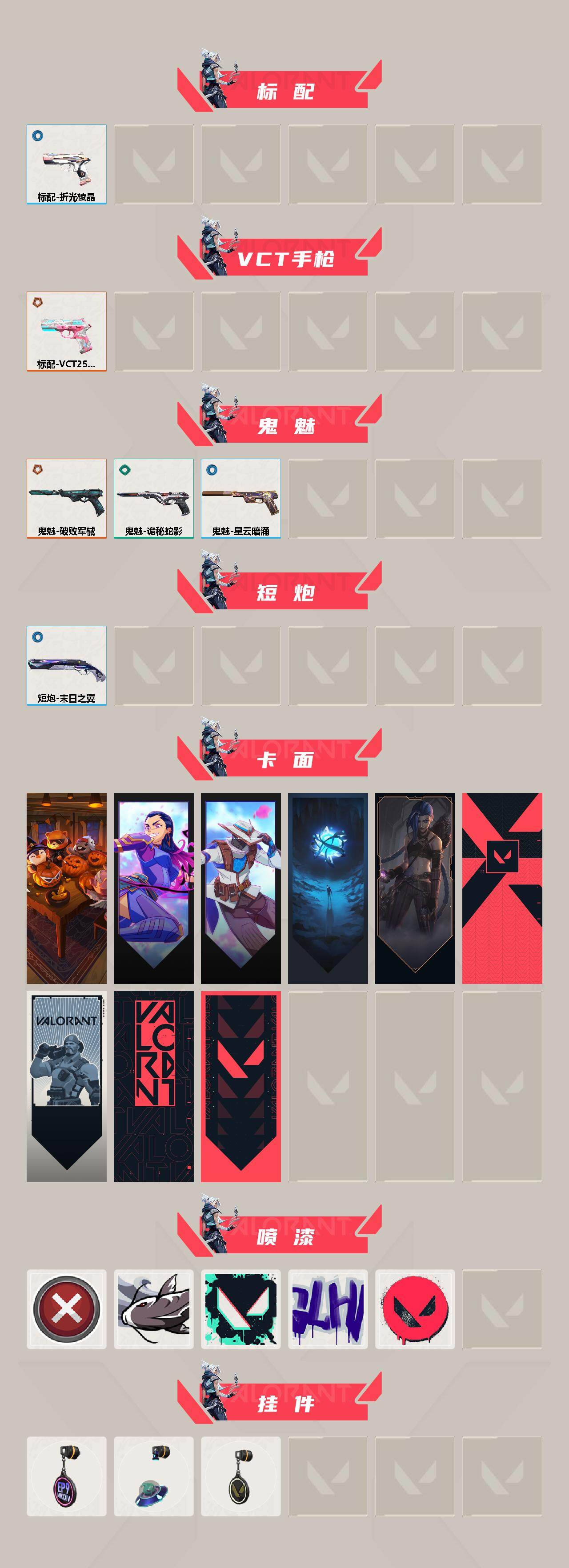 【英雄】:幻棱,炼狱,维斯,暮蝶,钛狐,壹决,铁臂,捷风,雷兹,幽影,不死鸟,贤者,猎枭,蝰蛇,零,芮娜,奇乐,尚勃勒,霓虹,斯凯,夜露,k/o,海神,盖可,黑梦,钢锁 【近战武器】:近战武器-离子武器//2.0 爪刀,近战武器-诡秘蛇影 军刀,近战武器-日耀风暴 遗器 【狂徒】:狂徒-混沌序曲,狂徒-塑水宗,狂徒-盖亚的复仇,狂徒-诡秘蛇影 【幻影】:幻影-盖亚的复仇//2.0,幻影-末日之