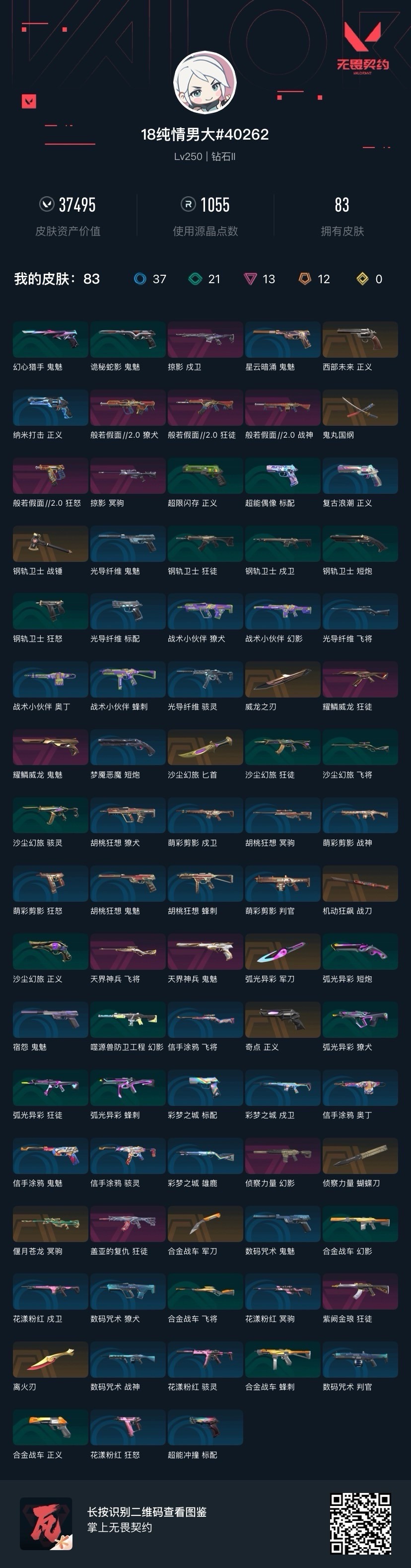[16508029]12橙皮 13紫皮 83皮肤 28英雄 136卡面 1055已用源晶 钻石段位 【亮点皮肤】离火刃 【套装】般若假面//2.0套装耀鳞威龙套装 【近战武器皮肤】战锤-钢轨卫士鬼丸国纲蝴蝶刀-侦察力量机动狂飙战刀威龙之刃匕首-沙尘幻旅军刀-弧光异彩军刀-合金战车