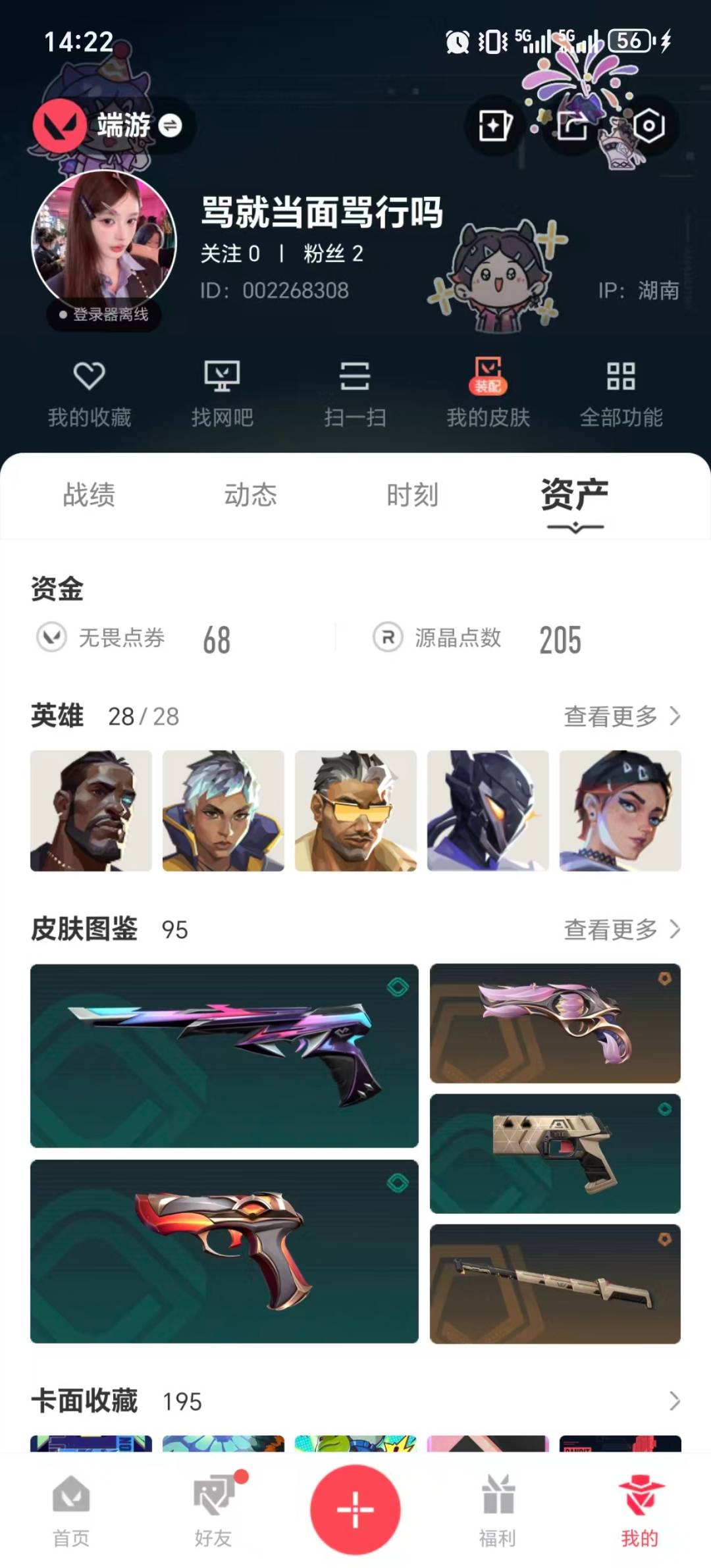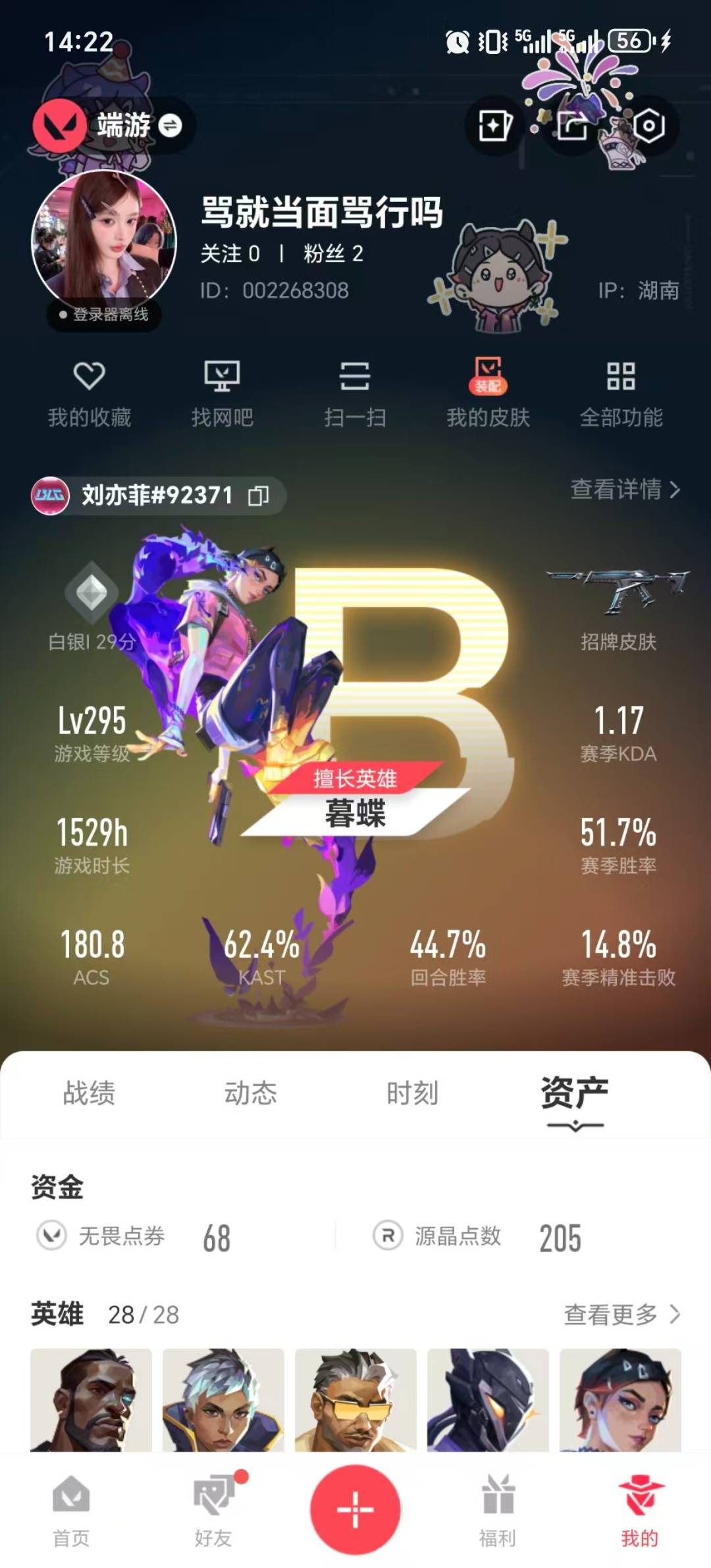 22橙皮 2金皮 3紫皮 95皮肤 28英雄 195卡面 1455已用源晶 白银段位 【亮点皮肤】幻影-2022全球冠军赛蝴蝶刀-2022全球冠军赛 【套装】vcn2025套装vct 2025赛季礼包奇点//2.0套装2022全球冠军赛塑水宗套装 【近战武器皮肤】蝴蝶刀-奇点//2.