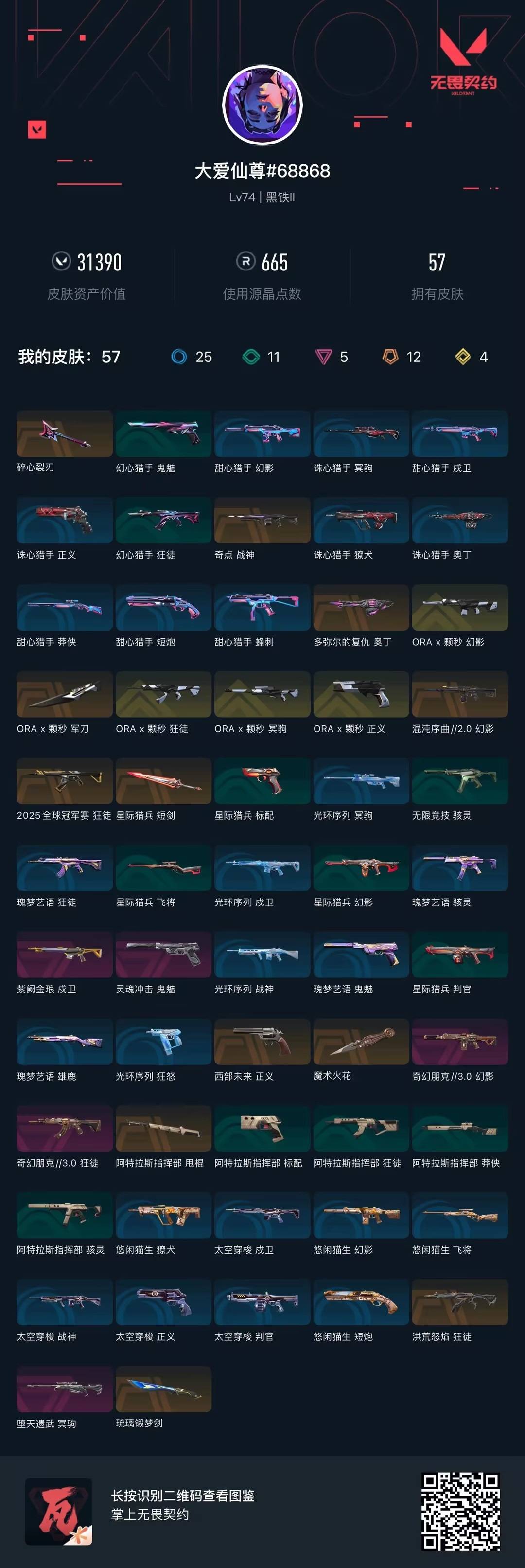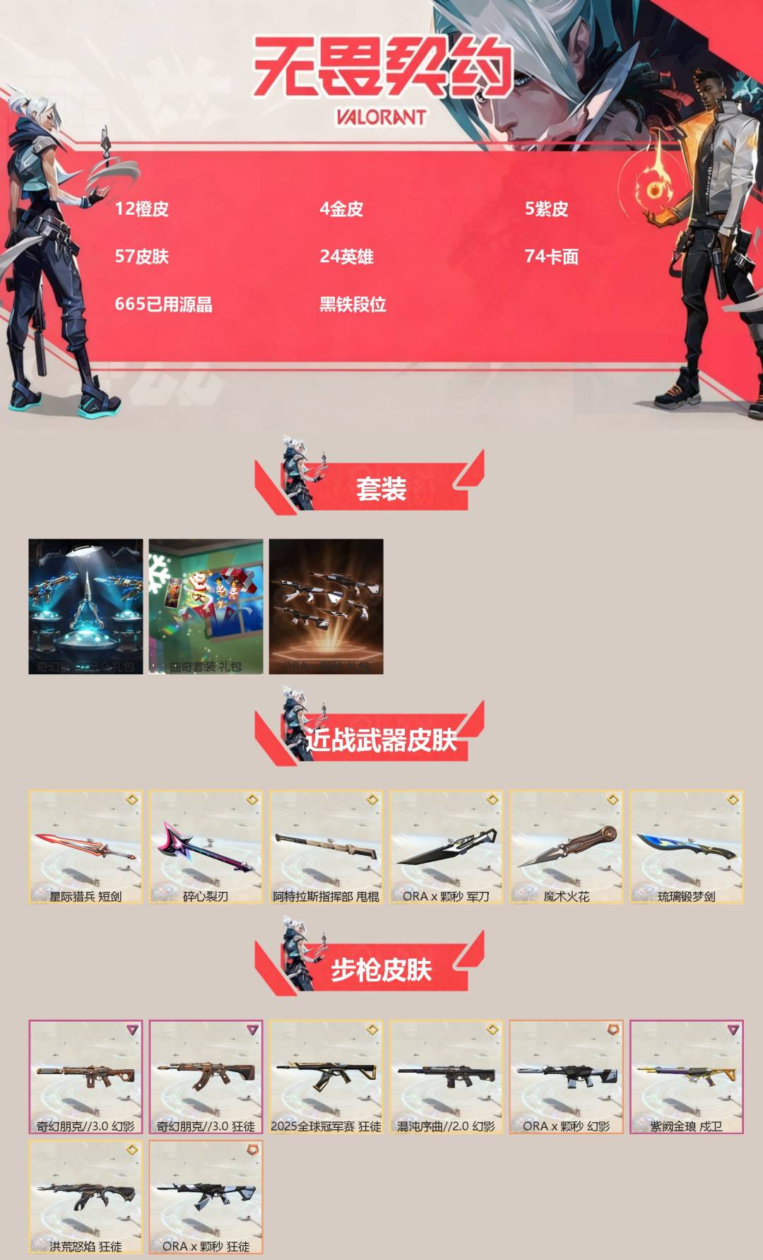 12橙皮 4金皮 5紫皮 57皮肤 24英雄 74卡面 665已用源晶 黑铁段位 【套装】奇幻朋克3.0套装曲奇套装ax颗秒 【近战武器皮肤】琉璃锻梦剑星际猎兵 短剑阿特拉斯指挥部碎心裂刃ax颗秒 军刀魔术火花 【佩呛皮肤】正义-ax颗秒正义-西部未来鬼魅-灵魂冲击