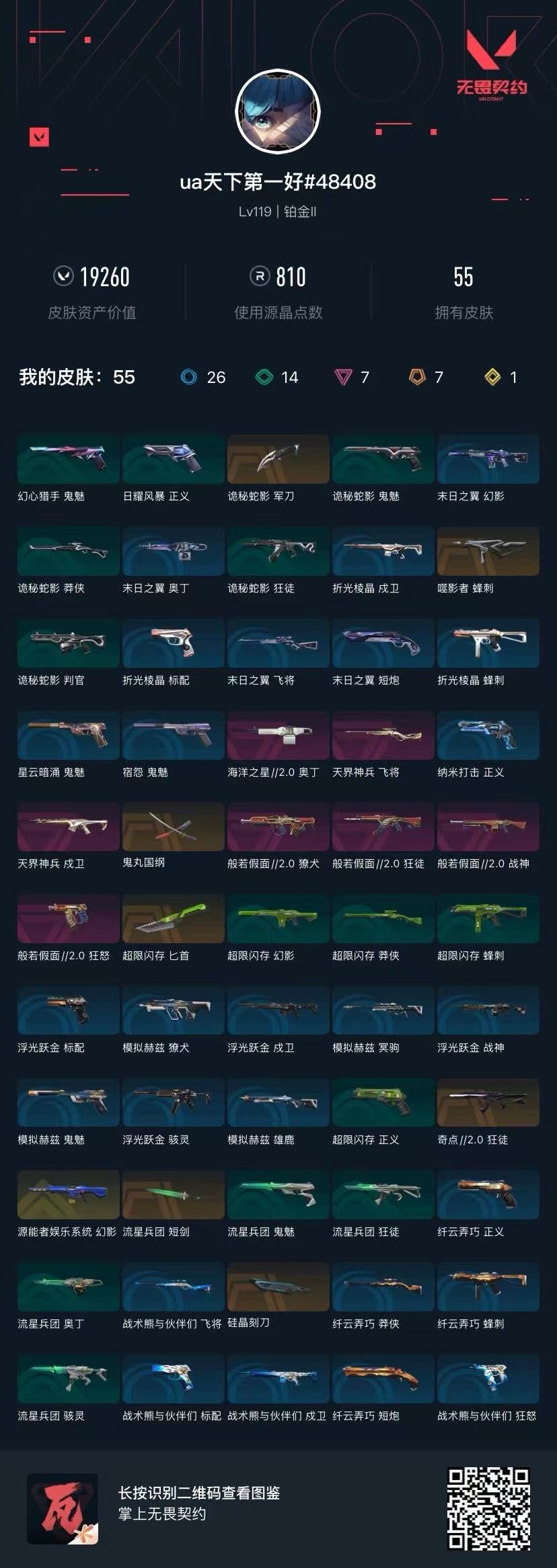 [16522158]7橙皮 1金皮 7紫皮 55皮肤 26英雄 96卡面 810已用源晶 未定级段位 【套装】般若假面//2.0套装 【近战武器皮肤】匕首-超限闪存短剑-流星兵团诡秘蛇影鬼丸国纲硅晶刻刀 【佩呛皮肤】狂怒-般若假面//2.0 【冲锋呛皮肤】蜂刺-噬影者 【步呛皮肤】獠犬-般