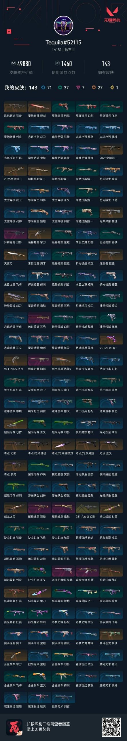 27橙皮 1金皮 7紫皮 143皮肤 28英雄 185卡面 1460已用源晶 钻石段位 【套装】奇点//2.0套装vcn2025套装2025全球冠军赛vct 2025赛季礼包耀鳞威龙套装 【近战武器皮肤】vct 2025 爪刀神圣领域 战刀荒土机兵热能刀诡秘蛇影匕首-超限闪存